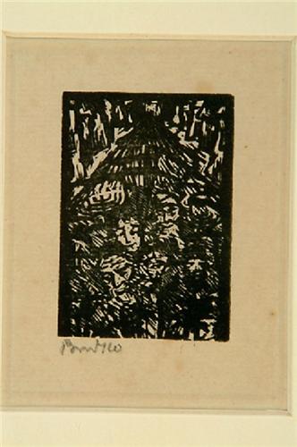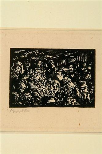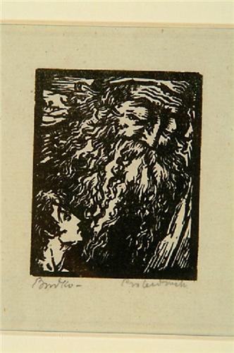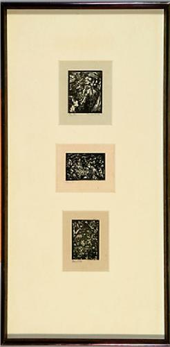 3 black & white woodblock prints, all illegibly signed, approx. 19" by 9 1/2" or smaller.