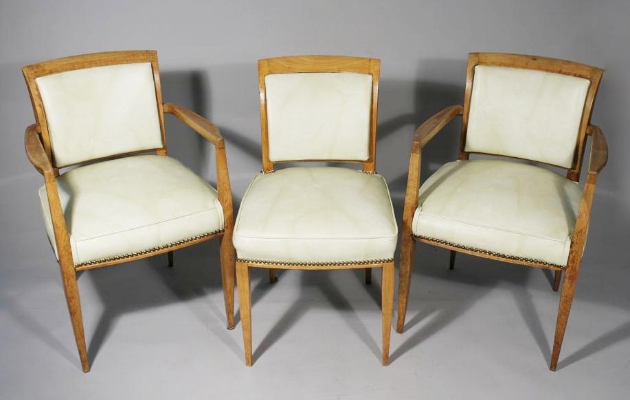 Three French Deco Chairs, Comprising of Two Armchairs and One Side Chair.