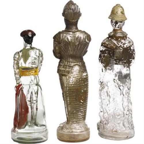 <B>Three French Flagons<BR></B></I>Unknown maker<BR>Nineteenth Century<BR>The flagons molded and enameled in the form of figures<BR>Unmarked<BR>15 inches high<BR><BR><b>Shipping:</b> Requires 3rd Party Shipping (<a target="_blank" href="http://www.heritageauctions.com/common/shipping.php">view shipping information</a>)
