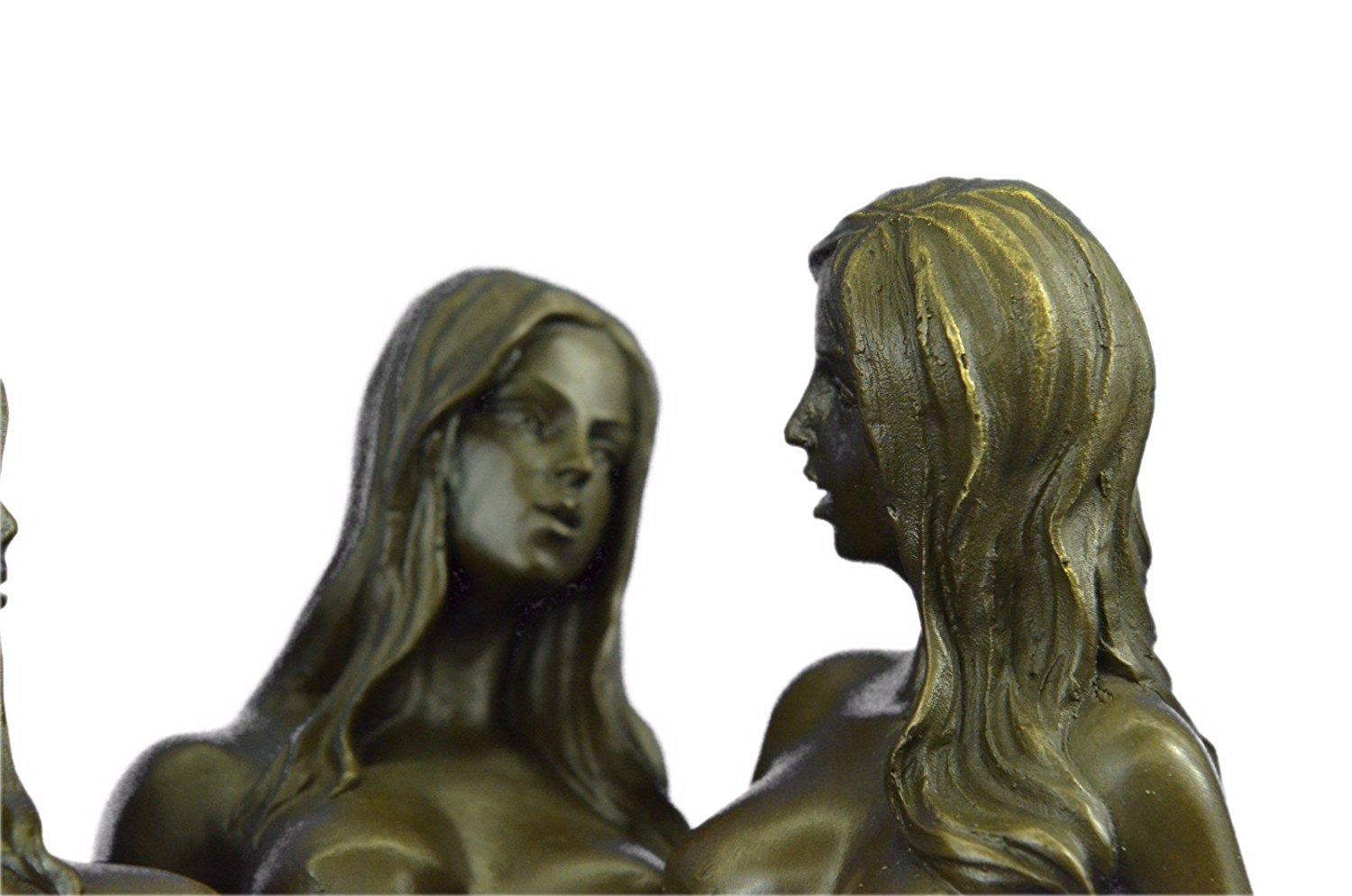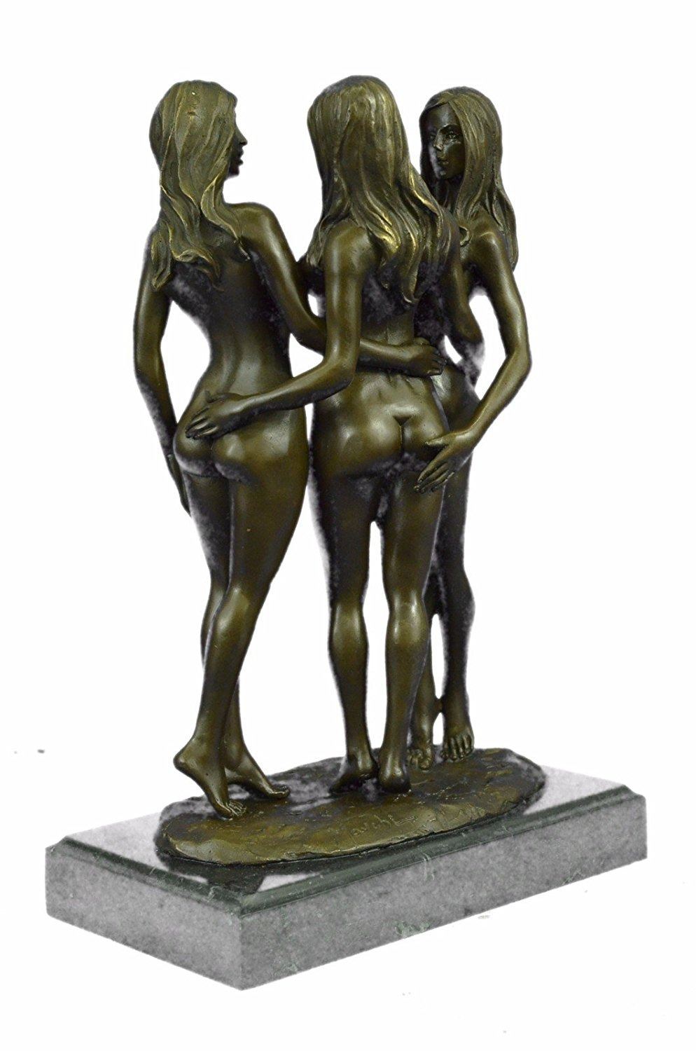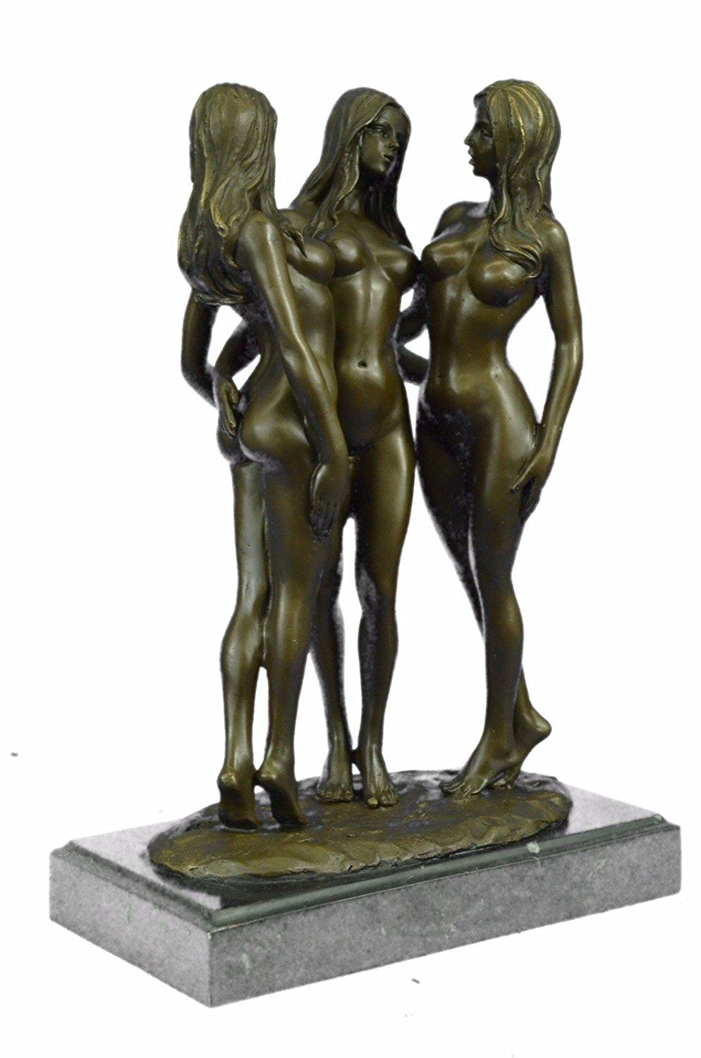 The three nude women bronze sculpture on base was cast by the traditional, Lost Wax Casting method of bronze. This labor intensive and time consuming method of casting bronze statues, ensure pristine quality and vivid detail. We Offers a large selection of bronze statues and bronze decoration perfect for indoor and outdoor use. This Artistic Statute Would Embody The Feel Of A Woman's Figure In Any Room. Bronze Dimensions with Marble Base: Height 12 X Width 8 inches. Weight: 12 LBS. Inventory: 28ST08811082