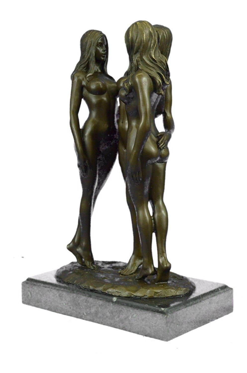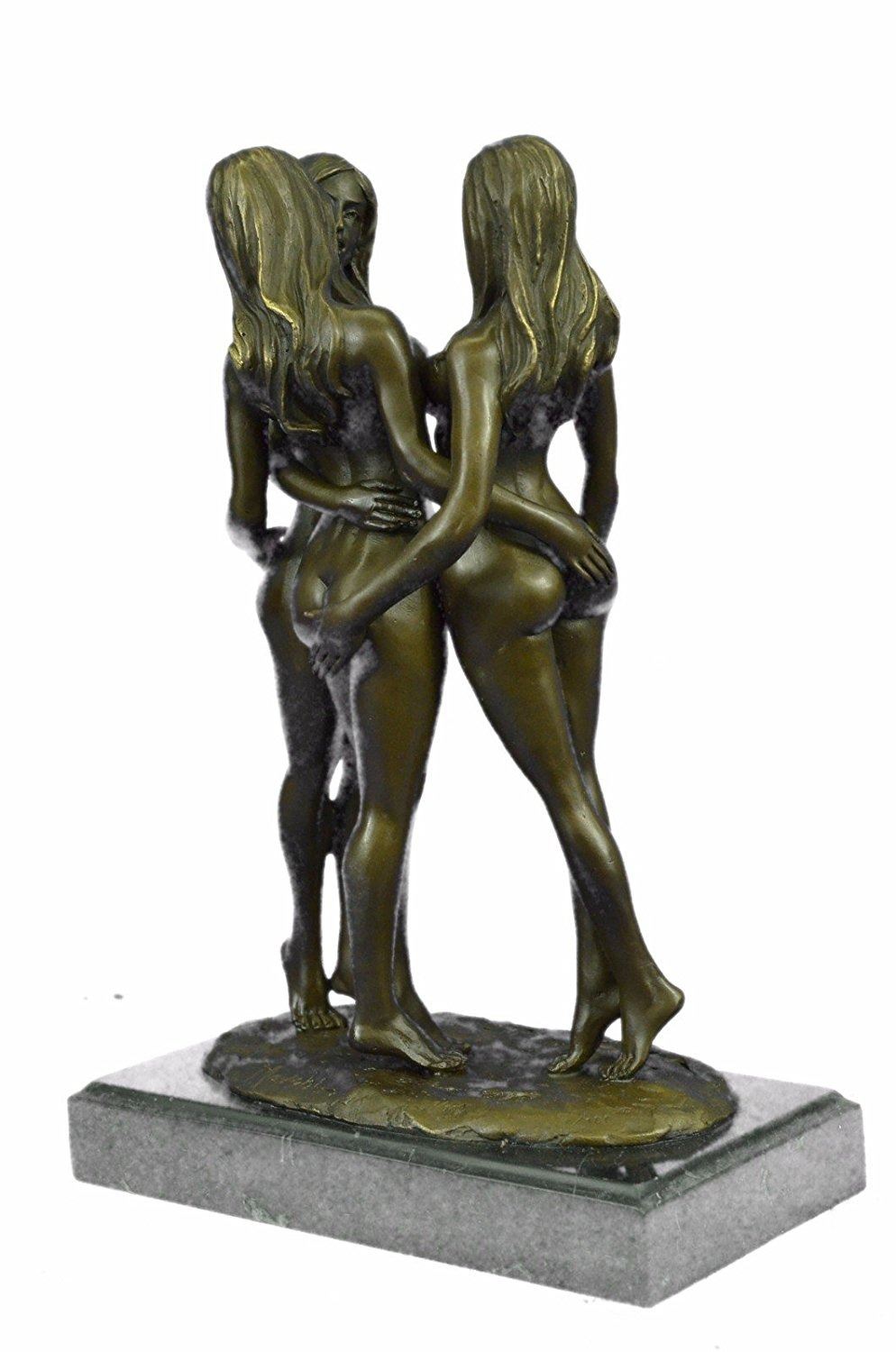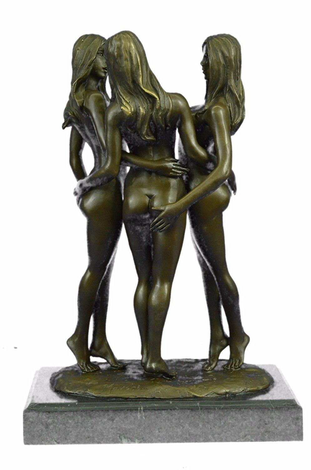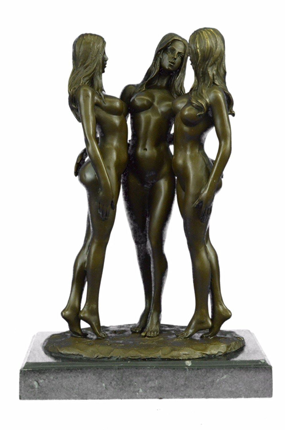 The three nude women bronze sculpture on base was cast by the traditional, Lost Wax Casting method of bronze. This labor intensive and time consuming method of casting bronze statues, ensure pristine quality and vivid detail. We Offers a large selection of bronze statues and bronze decoration perfect for indoor and outdoor use. This Artistic Statute Would Embody The Feel Of A Woman's Figure In Any Room. Bronze Dimensions with Marble Base: Height 12 X Width 8 inches. Weight: 12 LBS. Inventory: 28ST08811082