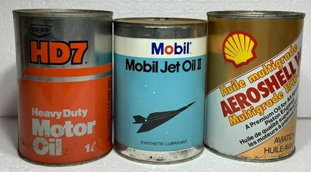Three Full Oil Tins Mobil/Co-op/Aero Shell