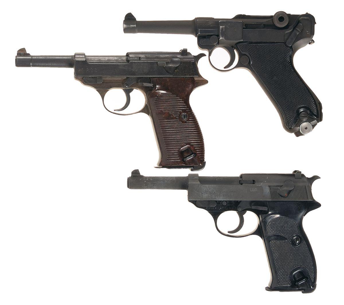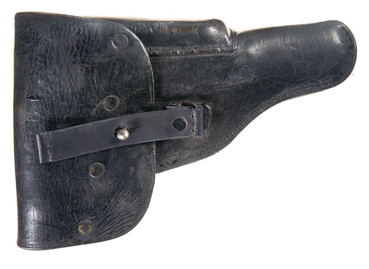 C) Fixed sights, "2/ 82" dated slide, altered chamber and checkered grips. With a shipping box, leather flap holster and postwar-rifle cleaning kit.