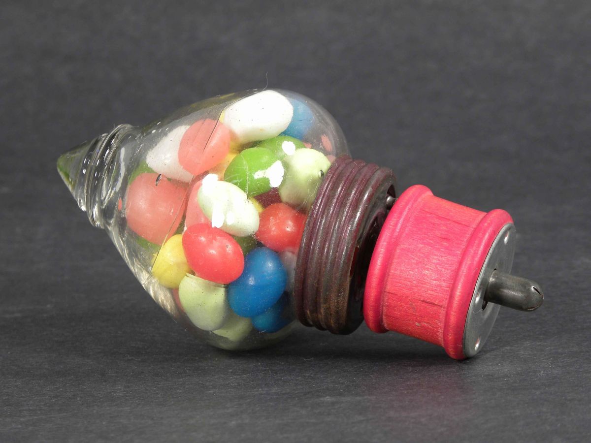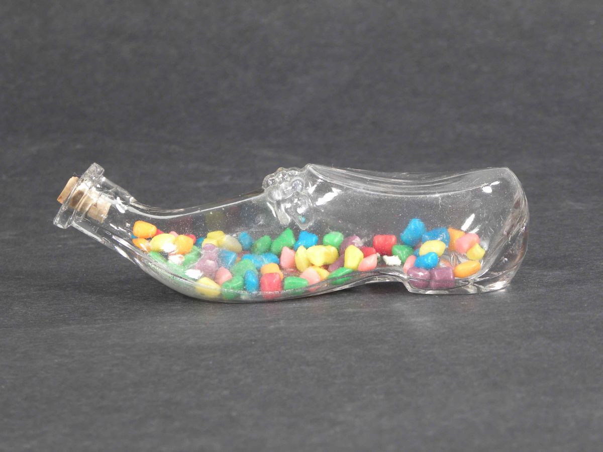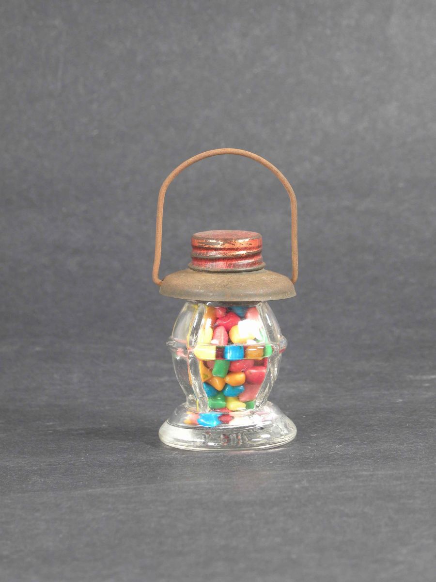 Lot of Three Glass Candy Containers. Top, shoe and lantern. Original lids, no chips or cracks.