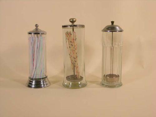 Three glass straw holders center holder has chips on base - other 2 ex. cond.