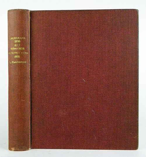 Hamburger, Leo. SAMMLUNG SCHWEIZER MÜNZEN UND MEDAILLEN DES HERRN THEODOR GROSSMANN, GENF. Frankfurt am Main, 13. Dezember 1926 und folgende Tage. (4), 159, (1) pages; 3249 lots; frontispiece portrait; 17 fine plates. Hand-priced in ink. [bound with] Hamburger, Leo. SAMMLUNG ADOLF IKLÉ, ST. GALLEN. SCHWEIZER MÜNZEN. Frankfurt am Main, 15. Oktober 1928 und folgende Tage. (6), 122, (2) pages; 2633 lots; frontispiece portrait; 34 fine plates. Hand-priced in pencil. [bound with] Hamburger, Leo. SAMMLUNG HANS WUNDERLY V. MURALT, ZÜRICH, MÜNZEN UND MEDAILLEN VON ZÜRICH, HISTORISCHE MEDAILLEN UND NACHTRAG. SAMMLUNG HENRY FATIO, GENF. SCHWEIZER MÜNZEN U. MEDAILLEN BESONDERS DIE KANTONE BASEL, FREIBURG UND GENF. Frankfurt am Main, 19. Oktober 1931 und folgende Tage. (6), 138 pages; 2996 lots; 37 fine plates. Hand-priced in pencil. Three catalogues bound in one volume. 4to, later red cloth, gilt. Very good or better. Three notable sales. Grossmann: Clain-Stefanelli 11778; Grierson 306. The Iklé catalogue includes the very important silver coins from this famous collection. The final catalogue is important for Swiss coins and medals. Clain-Stefanelli 11795. Grierson 306.