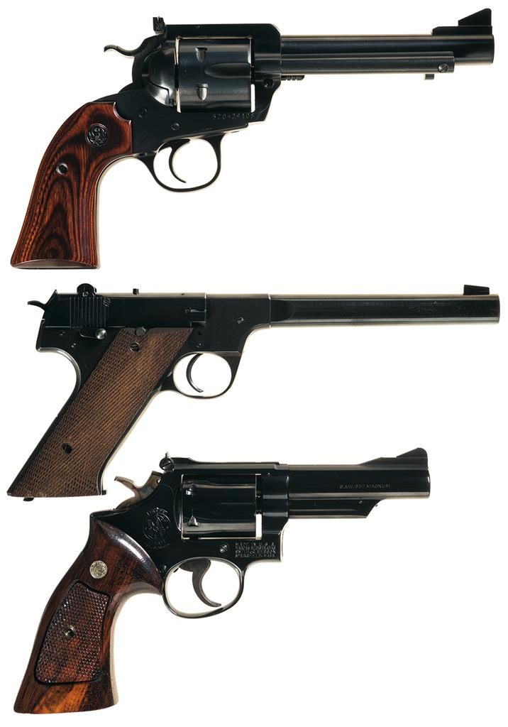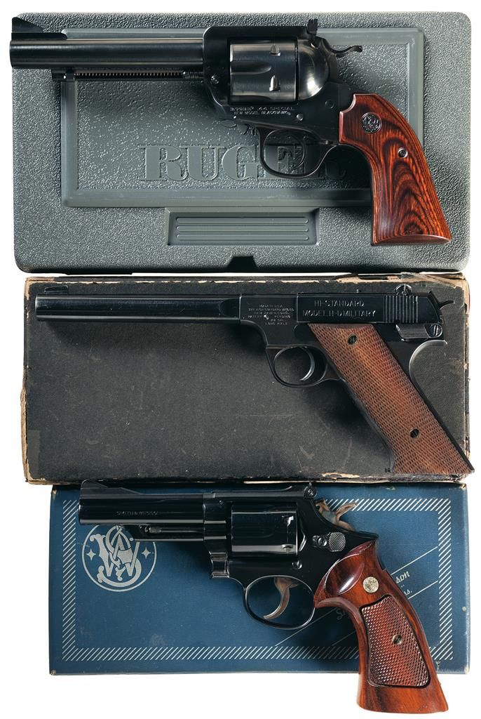 Three Handguns -A) Ruger New Model Blackhawk Single Action Revolver with Case