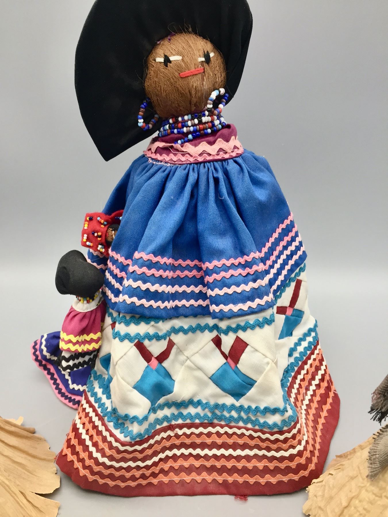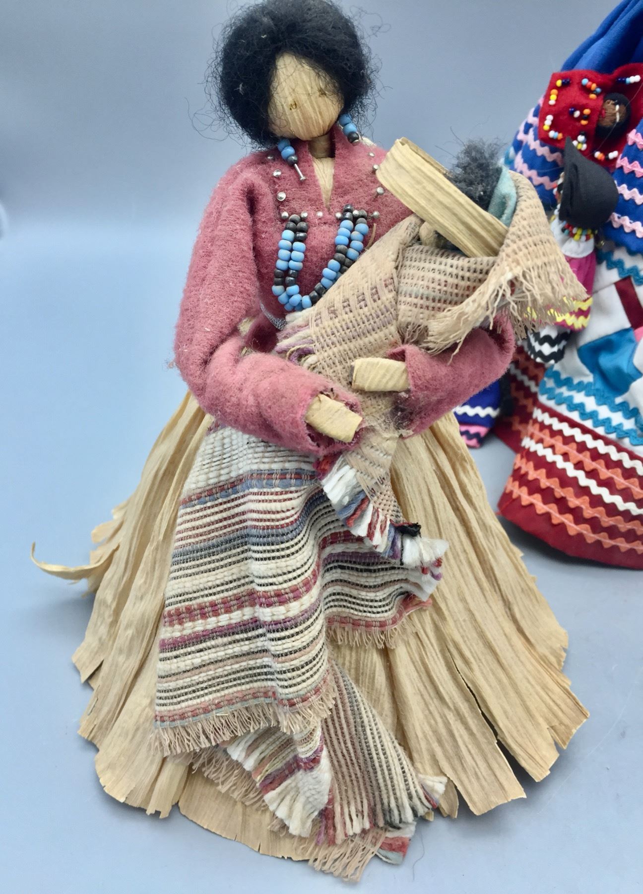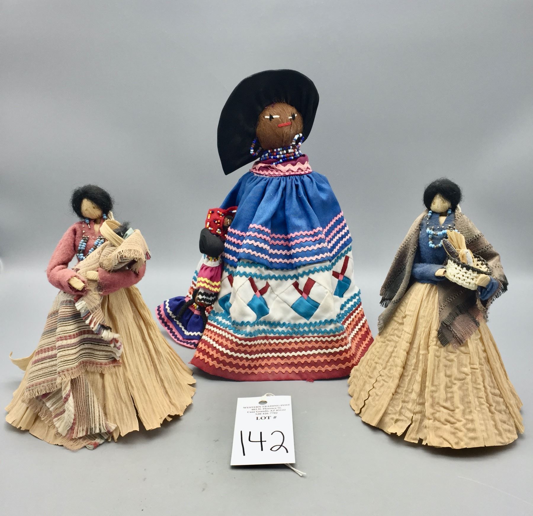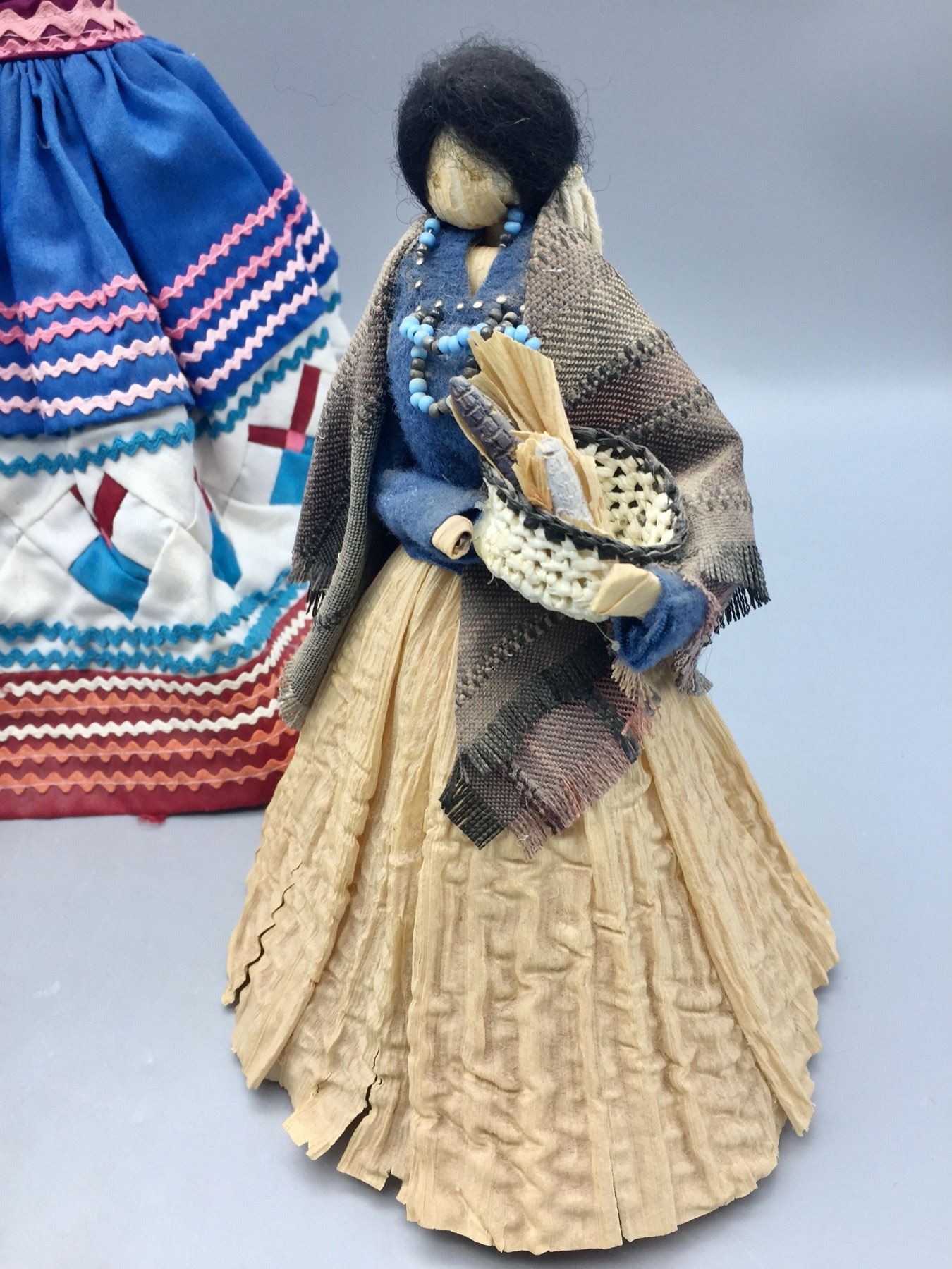 Description: For sale in this lot are three beautiful handmade dolls. There are 2 old corn husk dolls and a Seminole doll. All are handcrafted with great detail. Maker: Various. Approx. Age: Vintage. Size: 8.5” to 12” tall. Condition: Good for their ages, normal wear expected. Please look closely at the pictures - they are an important part of our description. Shipping: There will be a $12 handling, packaging fee for shipping this lot. The actual cost of postage will be added on top of that.