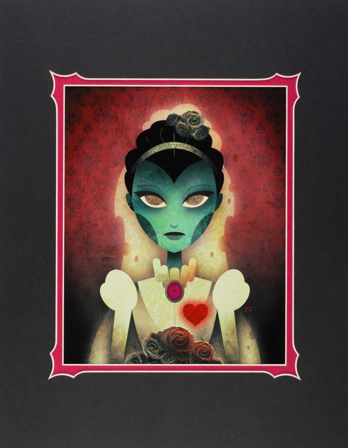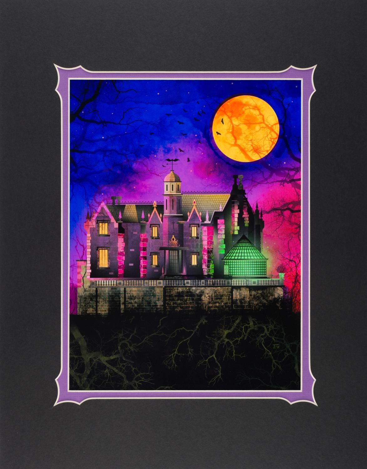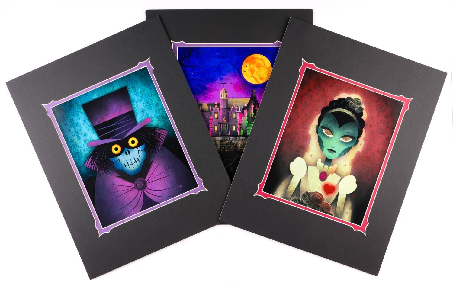 (The Art of Disney Theme Parks, 2019) Three Haunted Mansion Prints by Bryan Fyffe, titled "The Haunted Mansion… By The Light of The Moon," "The Hatbox Ghost," and "The Bride." Each fine-condition piece was released through The WonderGround Gallery and comes within its 14"x 18" matte.