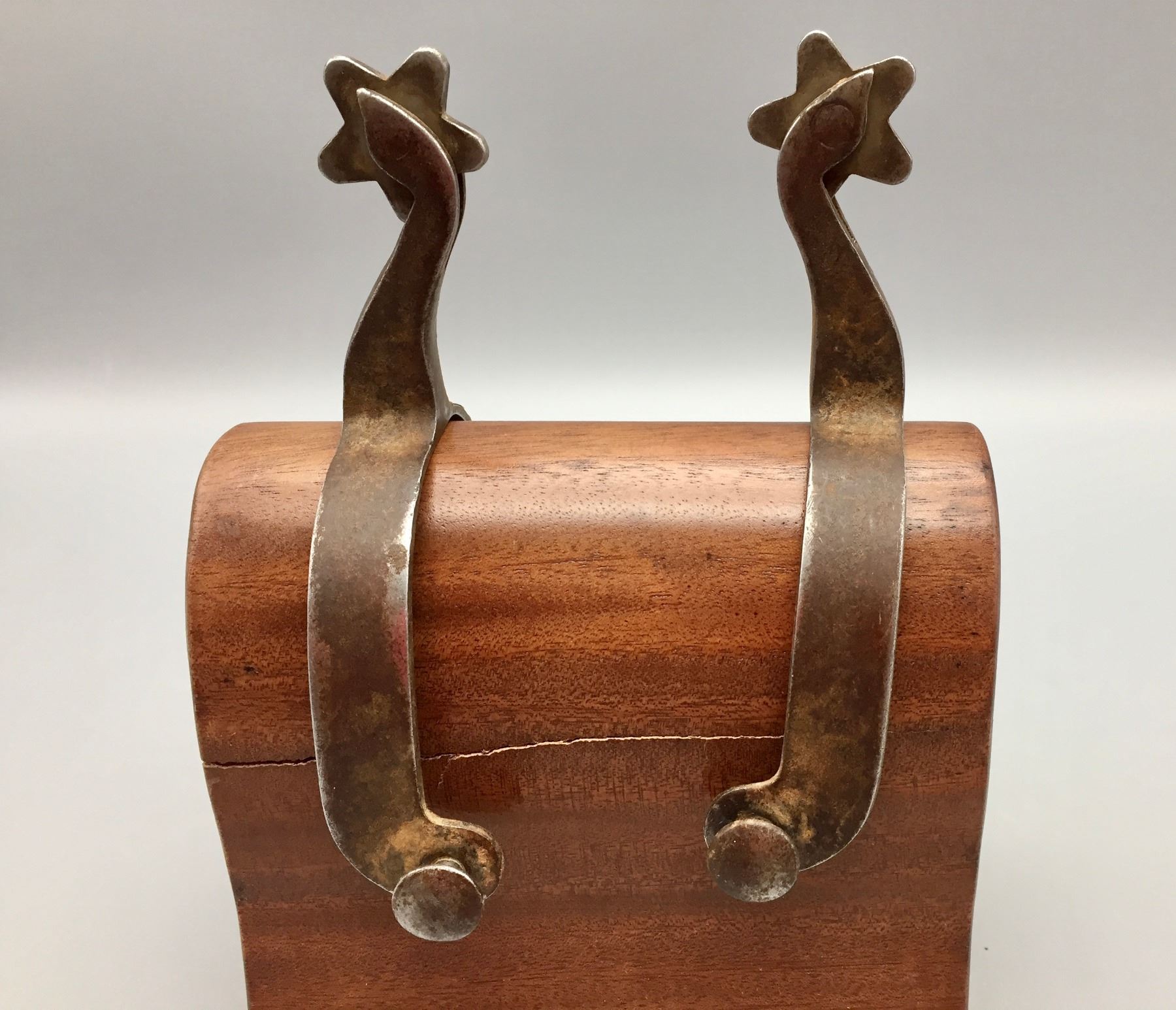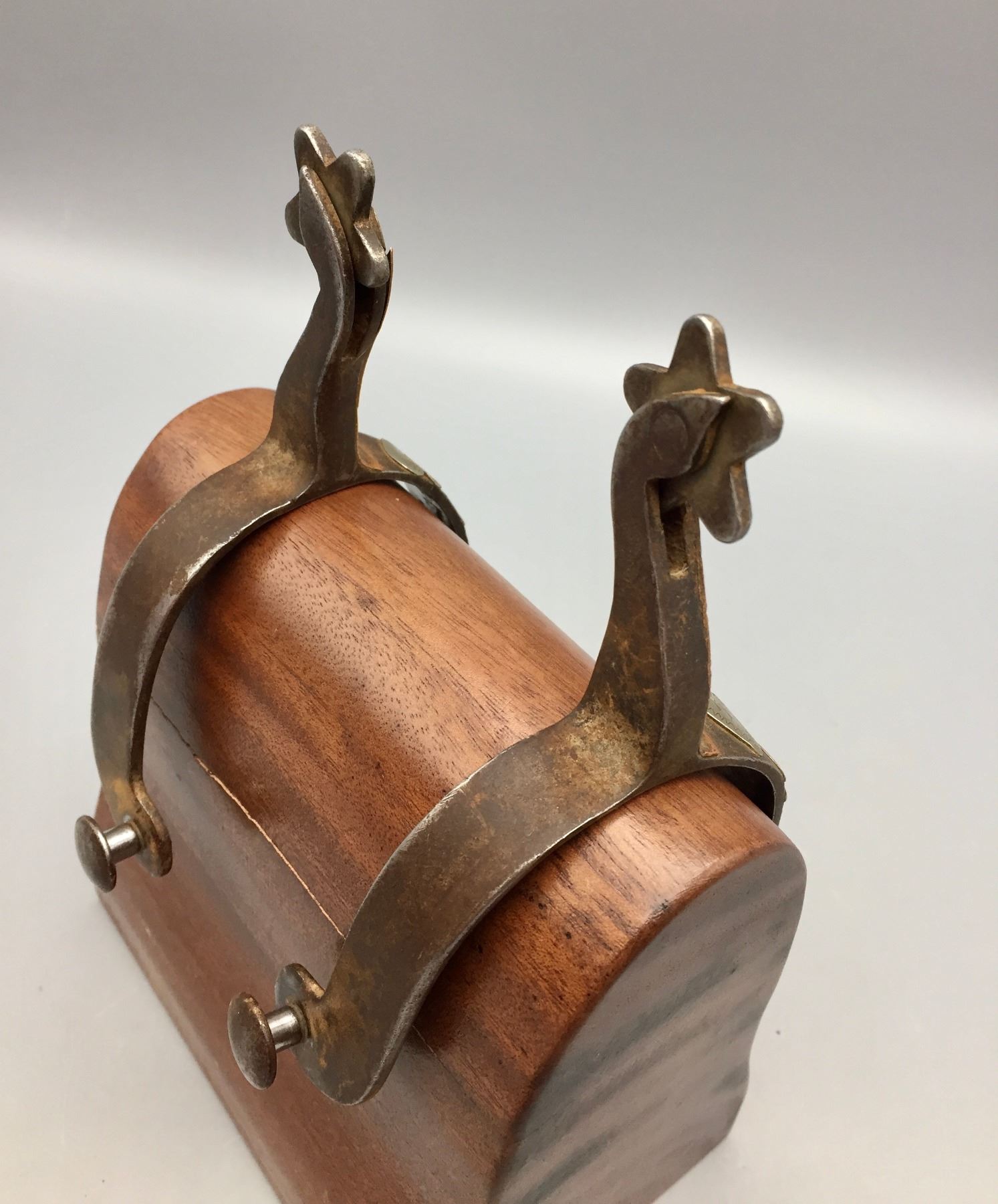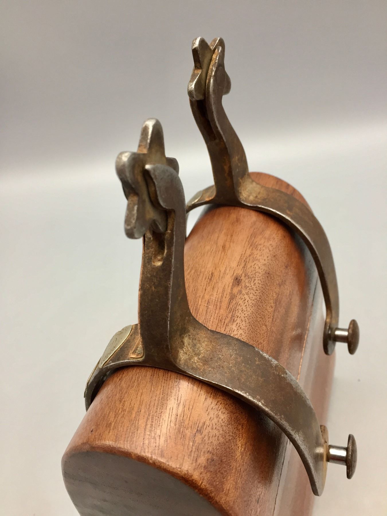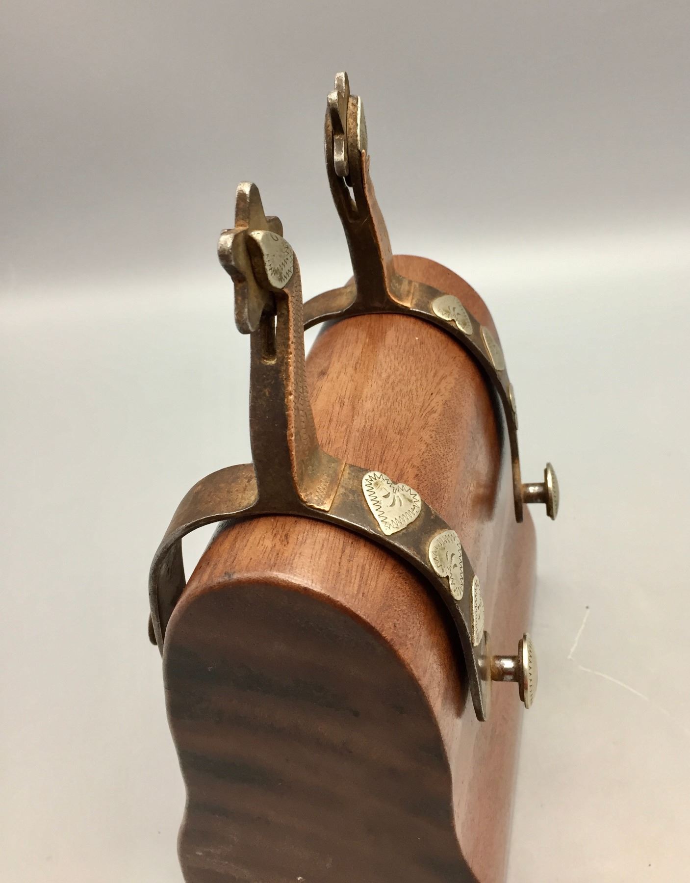 Description: Available for sale in this lot is a pair of Gooseneck spurs featuring single mounted and engraved hearts on the bands and the have engraving on the buttons. Maker: Unknown. Approx. Age: Vintage. Size: 3-1/8” heel, 2-3/4” shank. Condition: Good for their age, normal wear expected. Please look closely at the pictures - they are an important part of our description. Shipping: There will be a $5 handling / packaging fee for shipping this lot. The actual cost of postage will be added on top of that.