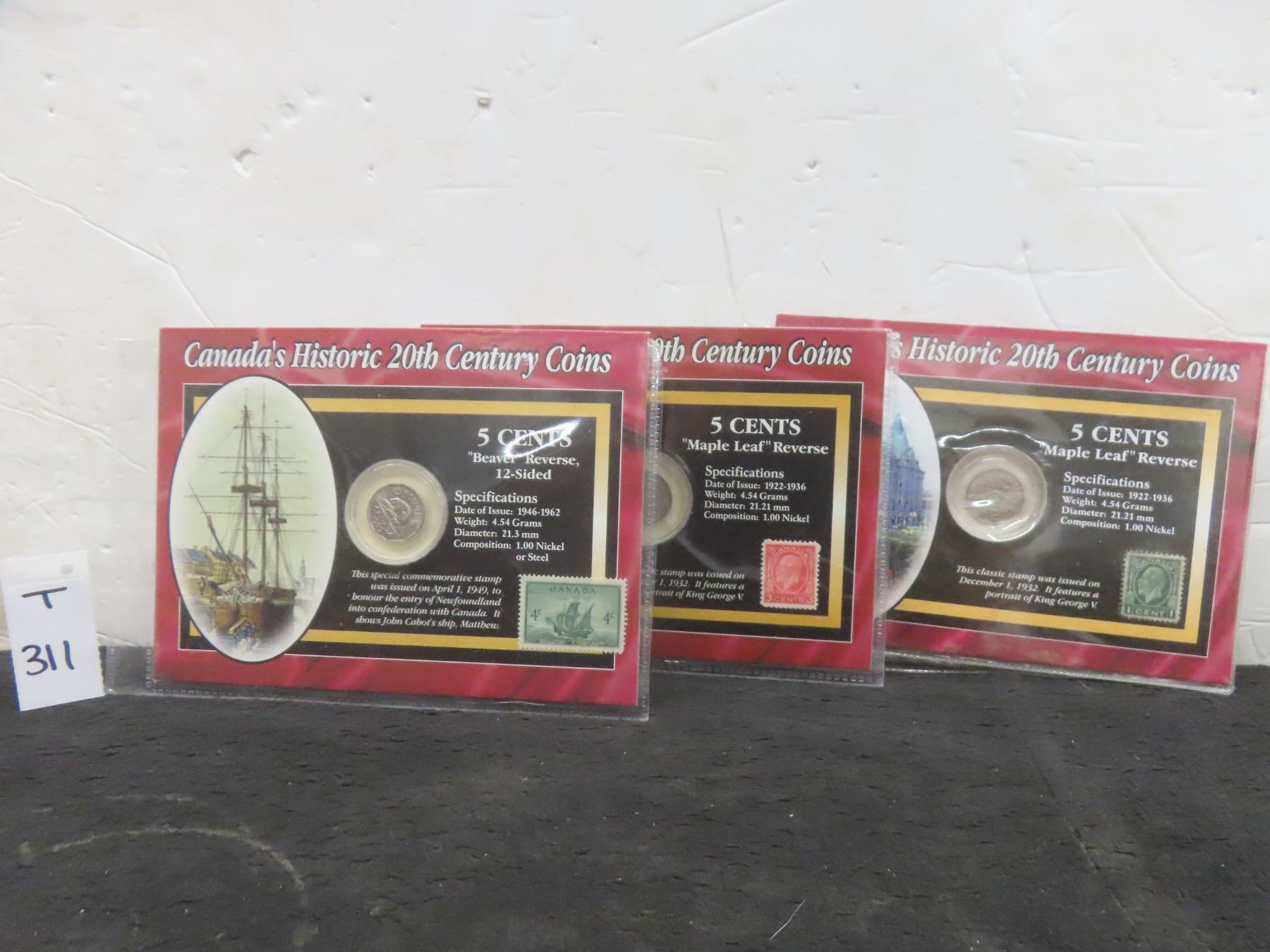 Three Canada’s Historic 20th-Century Coins; Two Maple Leaf Nickels (1922, 1924) And Beaver 12-Sided (1960)