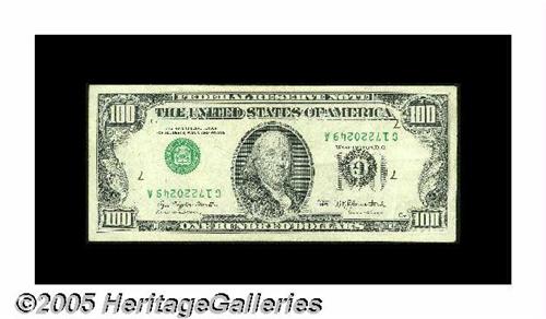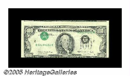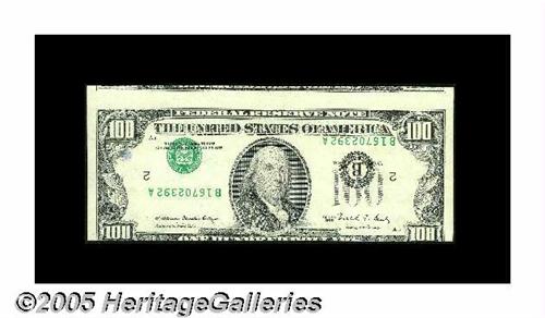 <B>Three Inverted Third Printing Hundreds.</B></I><BR>Fr. 2168-G $100 1977 Federal Reserve Note. VF<BR>Fr. 2172-B $100 1988 Federal Reserve Notes. Two Examples. Fine, with edge tear; AU.<BR>