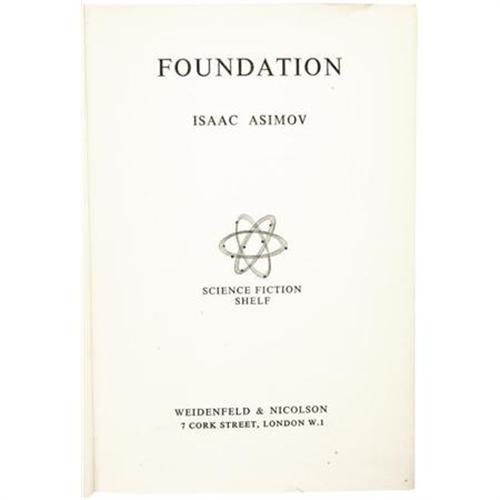 <B>Three Isaac Asimov First Editions,</B></I> including:<BR><B><I>Foundation</B></I></B></I> (London: Wiedenfeld & Nicolson, 1953), first UK edition, 246 pages, black cloth with silver titles, 12mo (5" x 7.25"), dust jacket. An about very good ex-library book in a good dust jacket that shows some tape repair, especially to the spine.<BR><B><I>Second Foundation</B></I></B></I> (New York: Gnome Press, 1953), first edition, first state, 210 pages, jacket design by Ric Binkley, blue boards with brown titles, 8vo (5.75" x 8.25"), dust jacket. Very good book in a very good unclipped dust jacket.<BR><B><I>Fantastic Voyage</B></I></B></I> (Boston: Houghton Mifflin Company, 1966), first edition, 239 pages, light red cloth with purple lettering on spine and front board, 8vo (5.75" x 8.5"), dust jacket. This copy was previously sold in the George Cosmatos sale at Sotheby's. Very good condition in a very good unclipped dust jacket.<BR><BR><b>Shipping:</b> Books & Catalogs (<a target="_blank" href="http://www.heritageauctions.com/common/shipping.php">view shipping information</a>)
