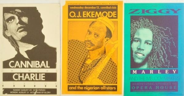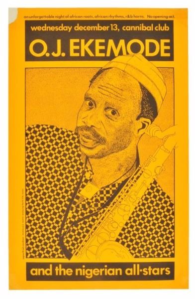 O.J. Ekemode Poster, Cannibal Club, Austin, TX. December 13, 1989. Artist: Nels Jacobson. Linen backed. 11" x 17". Tear in upper left corner.