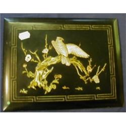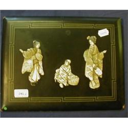 Three Japanese Ivory and Lacquered Panels, decorated birds and figures, a Victorian papier mache pic