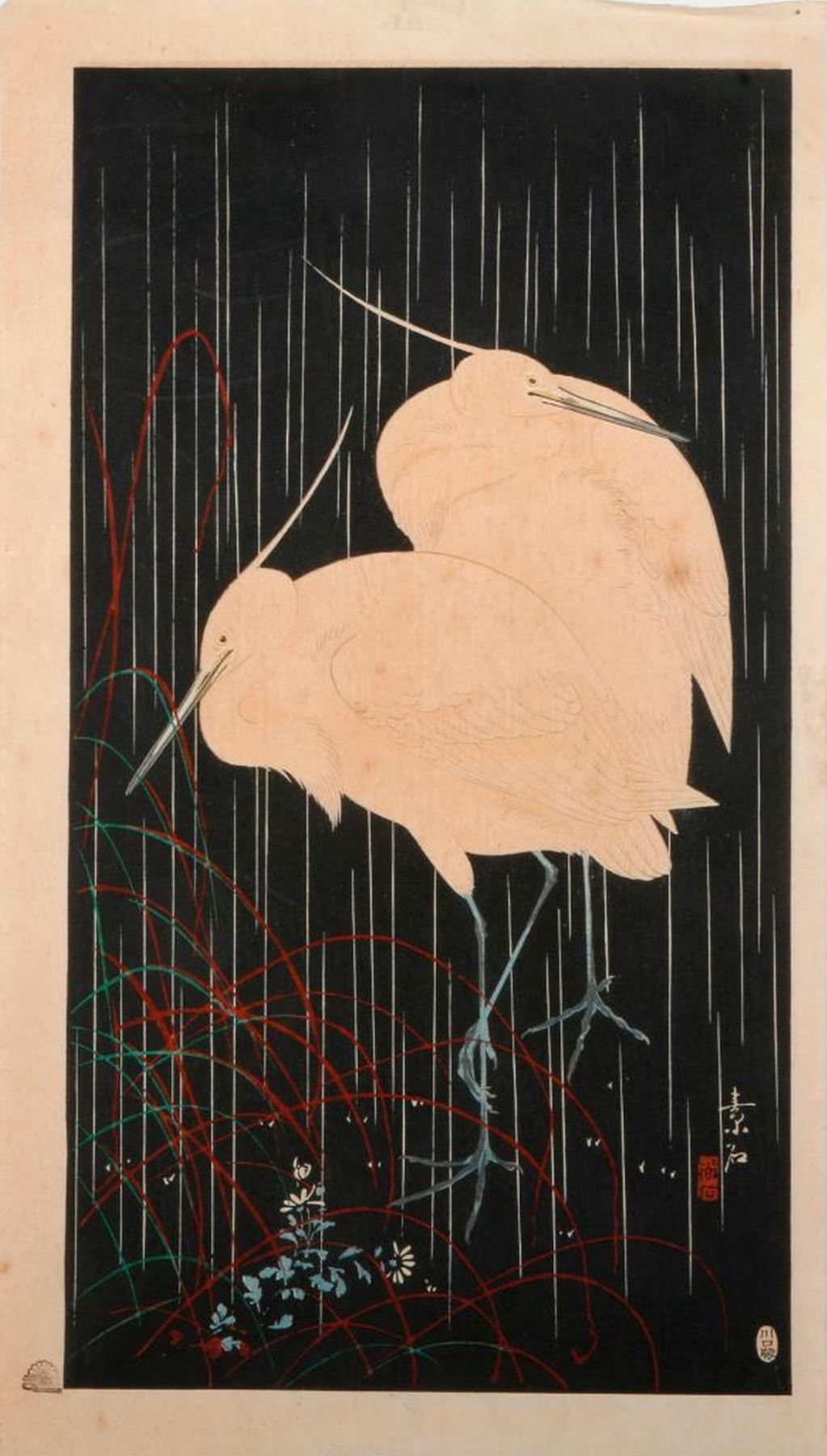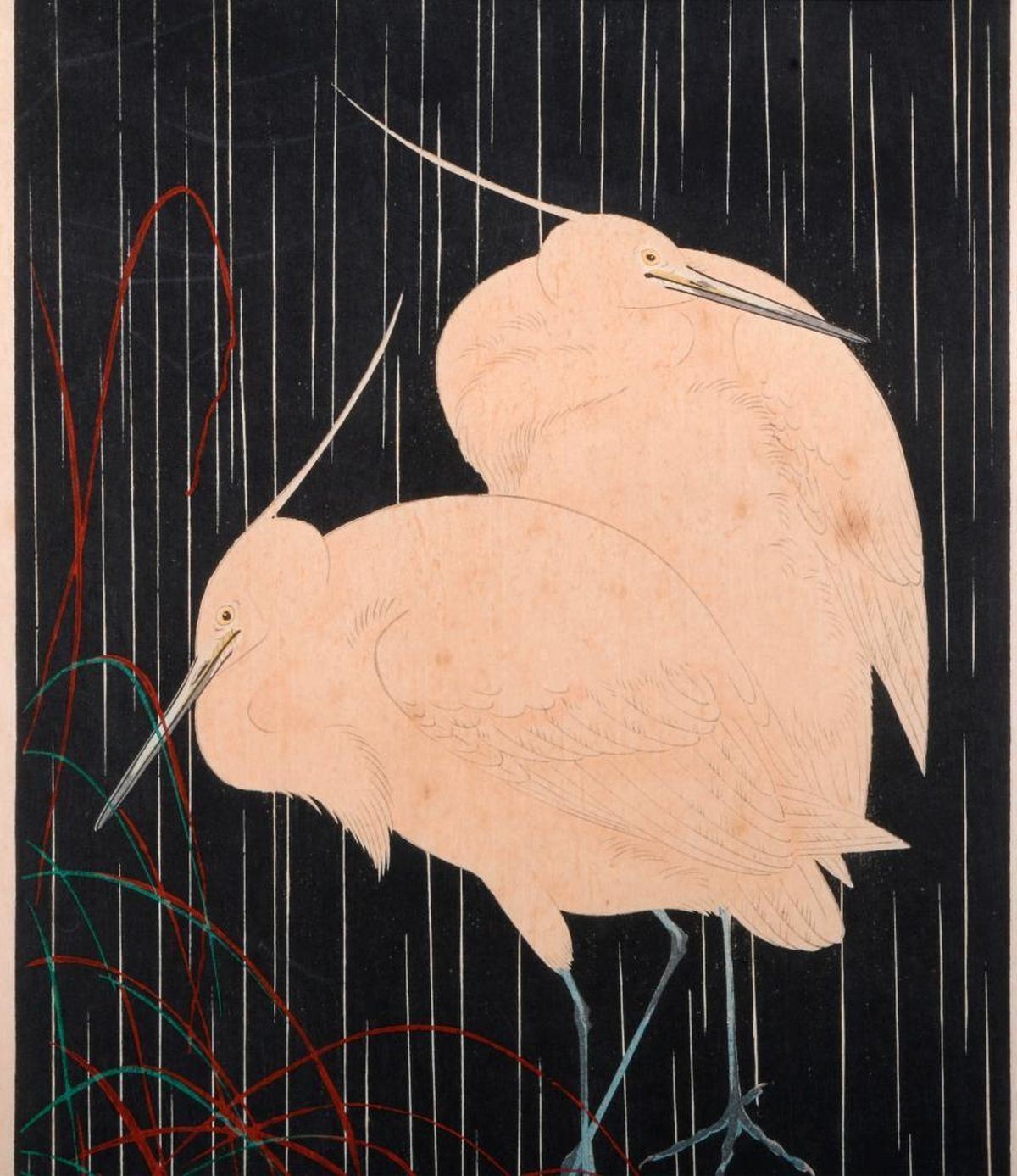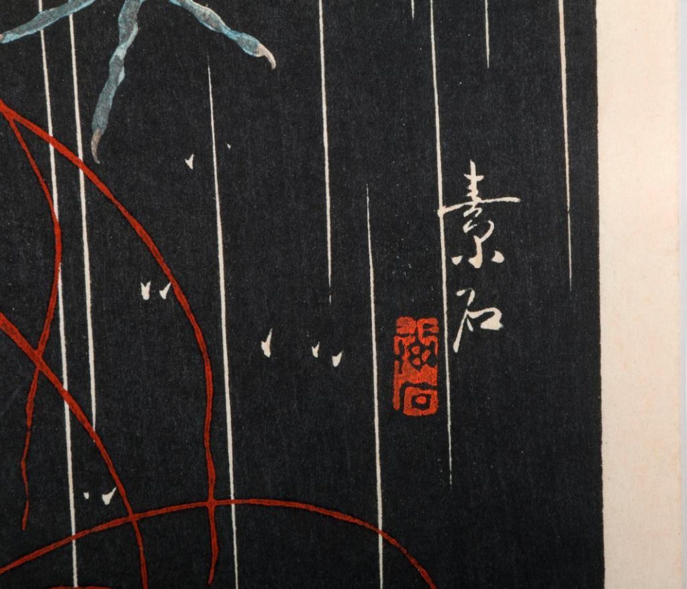 Artist: Various. Subject/Title: Portrait, Birds, Landscape. Date Created: Early 20th century. Medium: Wood block prints Size Artwork: Largest print 15 inches high x 10 1/2. Size Frame: 15 1/4 inches high x 10 1/2. Condition: Good.