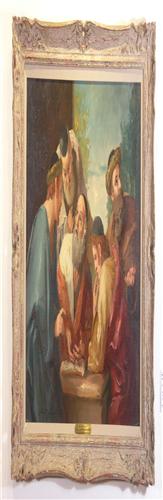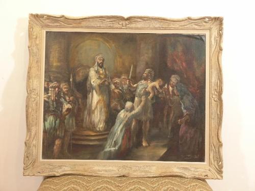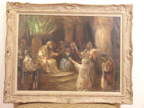 Piczalyd. Judgment of Solomon, /s/ l.l., oil on canvas, excellent condition, 30" by 38"; Piczalyd. Judgment of Solomon, /s/ l.r., oil on canvas, excellent condition, label verso "Guenther's Galleries , Cleveland, "29" by 35"Szantho, Maria (Hungary 1902-1992) Contemplating Men, /s/ l.l., oil on canvas, excellent condition, label verso "Guenther's Galleries, Cleveland," 30" by 36"