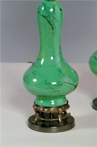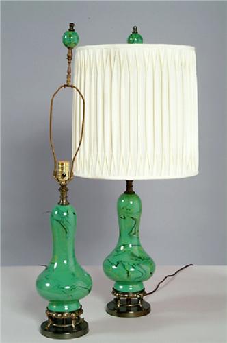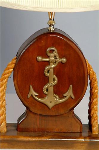 (American 20th Century) Pair of hand painted lamps with shads, and decorative sailing lamp with shade, approx. 48" each