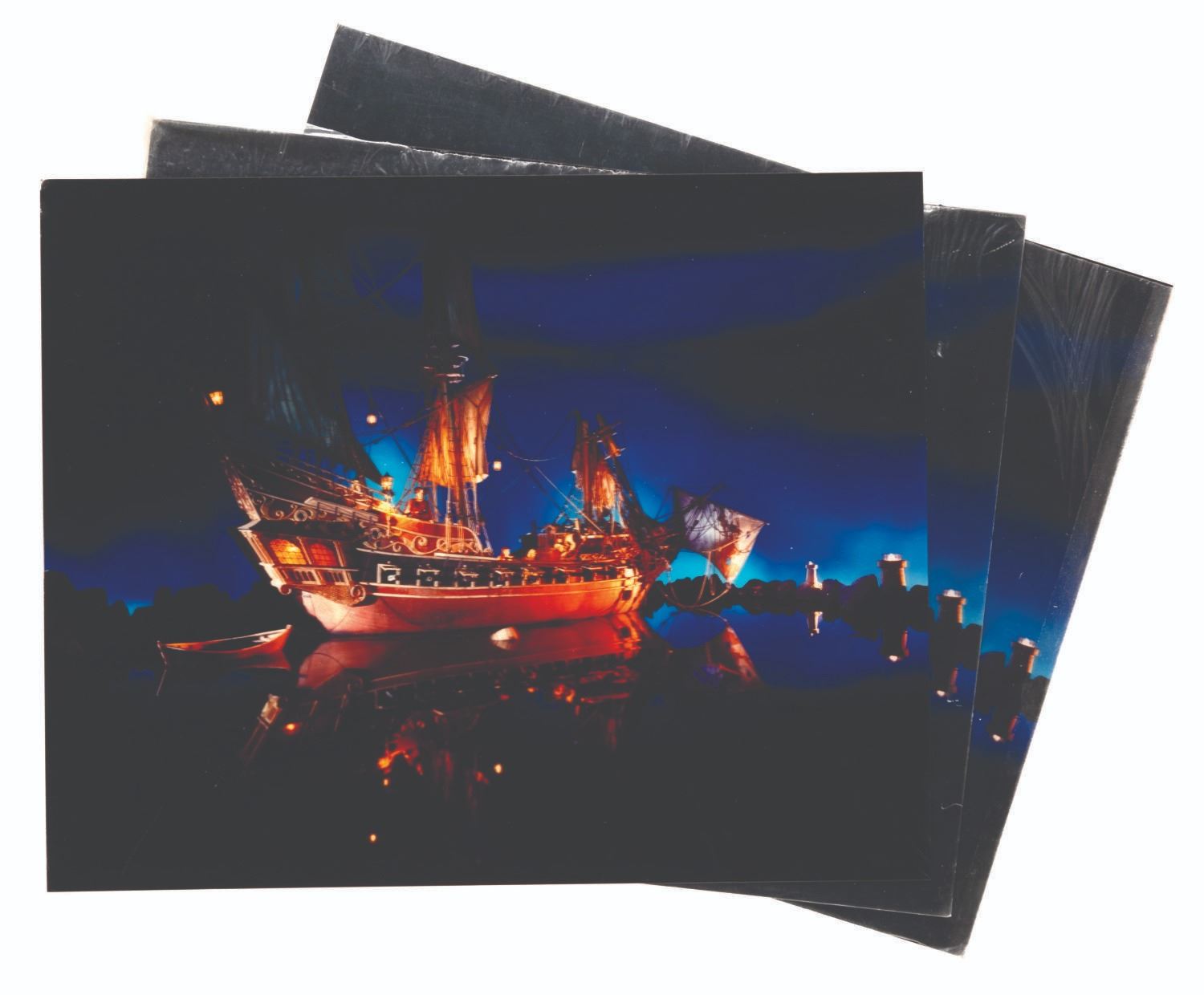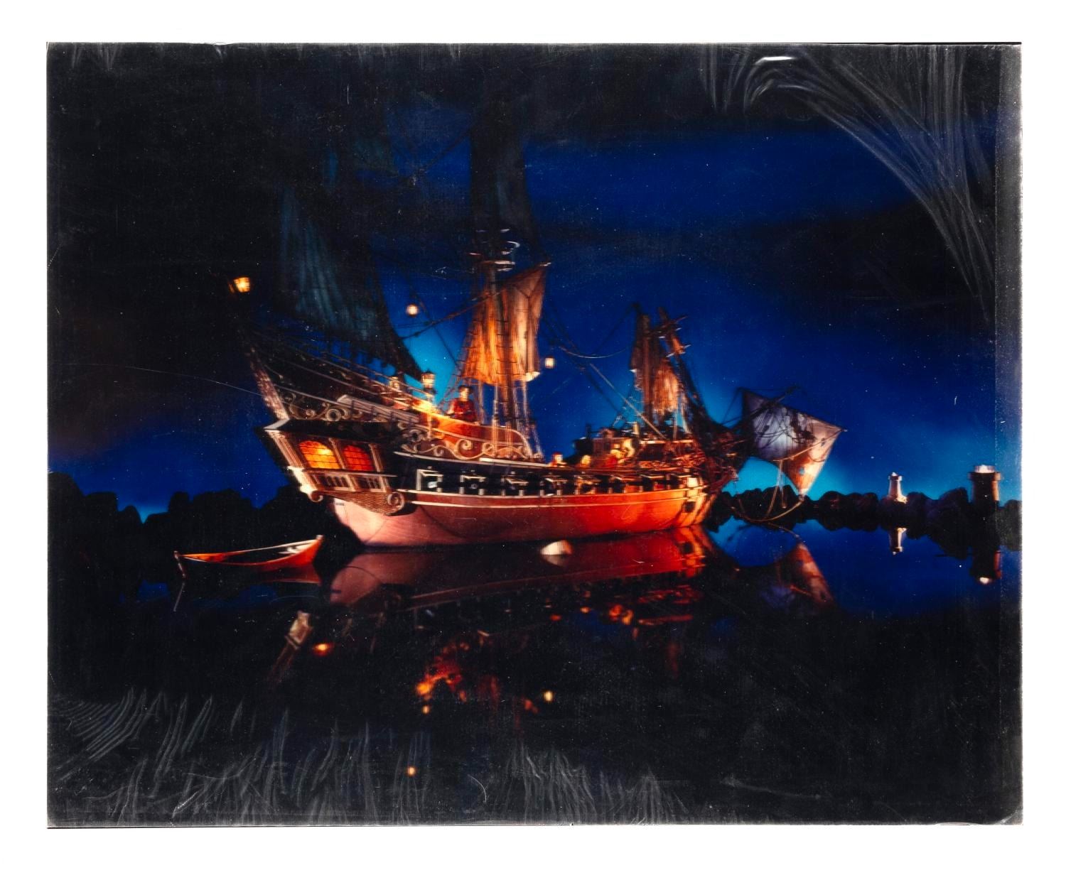 (Disneyland, 2000) Three lenticular photographs depicting the pirate ship scene from the original Pirates of the Caribbean attraction. Titled "Wicked Wench," this lenticular photo was released framed in a limited edition of only 500 pieces. Each measuring 14.5" x 18", two of the lenticulars are in fine condition with the protective film still attached, and the third in very good condition with small scratches, scuffs, and wear to one corner.