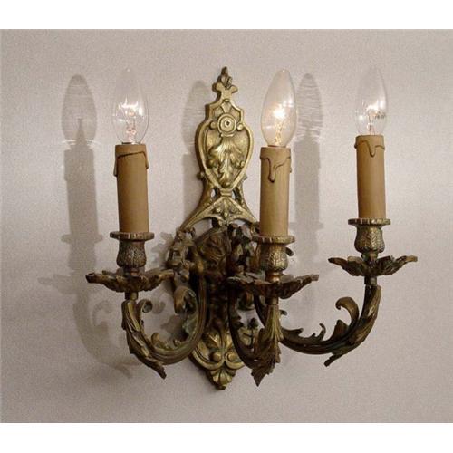 Three-light, Rococo-style, heavy bronze wall sconce. In good used condition as shown. Please ask questions, request additional photos and shipping costs before buying.