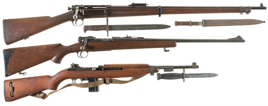 Three Long Guns -A) U.S. Springfield Model 1898 Krag Bolt Action Rifle with Bayonet