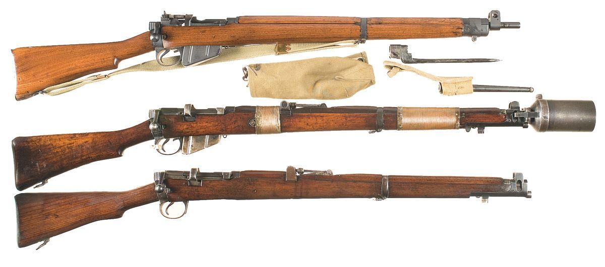C) Enfield rifle converted into a 410 by the Ishapore factory, right butt socket marked Enfield/1915/III, left side marked R.F.I 410/1939, a couple of wood repairs to cracked handguard behind rear sight.