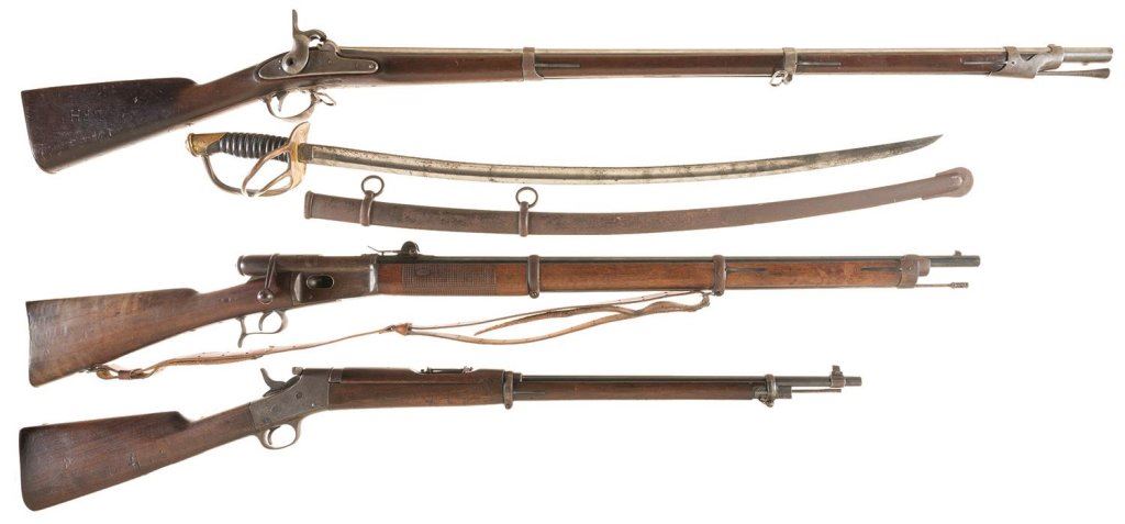 Three Long Guns and One Sword -A) Harpers Ferry Percussion Musket with Sword