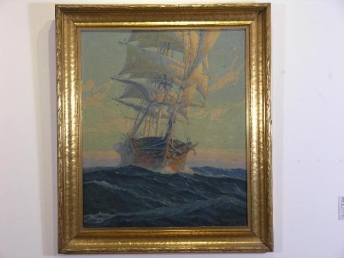 Gleason, Joe Duncan (American 1881-1959). Three Mast Schooner, /s/ l.r., oil on canvas, great condition, 29" by 25"