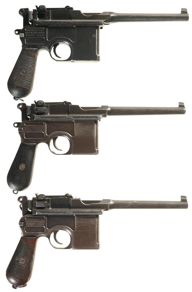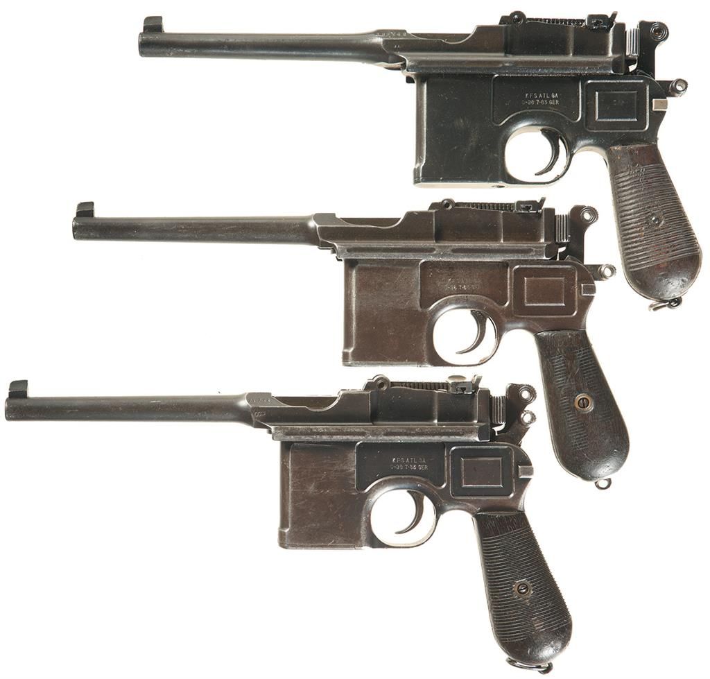 Three Mauser Small Ring Broomhandle Semi-Automatic Pistols -A) Mauser Broomhandle Pistol