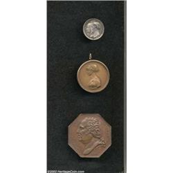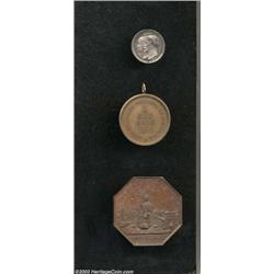 <table><tr><td><TABLE cellSpacing=0 cellPadding=0 width="100%" bgColor=#000000 border=0><TBODY> <TR><TD width="100%"><TABLE cellSpacing=1 cellPadding=3 width="100%" border=0><TBODY><TR><TD width="100%" bgColor=#79735c><FONT face=arial color=#ffffff size=3><B>Description</B> </FONT></TD></TR><TR><TD width="100%" bgColor=#ffffff><FONT face=arial size=2><B>Three Medals.</B></I> Included are: Louis XVIII Chambre de Commerce de Havre, octagonal, bronze, a well executed medal with even brown patina; 1812 Duchesse de Courlande, bronze, mounted in a bezel and very well designed; and an 1816 medallet of Napoleon III and his beloved on one side, their child on the other, silver, toned Proof.<BR><I>The last two are ex: Menjou, lot 3632.</B></I> (3 medals) </FONT></TD></TR></TBODY></TABLE></TD></TR></TBODY></TABLE><BR><A name=PricesRealized></A><TABLE cellSpacing=0 cellPadding=0 width="100%" bgColor=#000000 border=0><TBODY><TR><TD width="100%"><TABLE cellSpacing=1 cellPadding=3 width="100%" border=0><TBODY><TR><TD width="100%" bgColor=#79735c><A name=PR><FONT face=arial color=#ffffff size=3><B>Previous Prices from Heritage Auctions</B> </FONT></A></TD></TR><TR><TD bgColor=#f6f6ed>No Prior Data Recorded </TD></TR><TR><TD bgColor=#ffffff><FONT face=arial size=1 ?>PLEASE NOTE: All prices realized reflect the final hammer price PLUS the buyer's premium in auctions that charge a buyer's premium. Each item has a notation at the top of the listing indicating whether that lot included a buyer's premium. Example: A item that sells with a final hammer price of $100 and a 20% buyer's premium will display with a price realized of $120. All information listed is intended to be as accurate as possible, but errors are possible. Please use this guide carefully and inform us of any inaccuracies. </FONT></TD></TR></TBODY></TABLE></TD></TR></TBODY></TABLE><BR><TABLE cellSpacing=0 cellPadding=0 width="100%" bgColor=#000000 border=0><TBODY><TR><TD width="100%"><TABLE cellSpacing=1 cellPadding=3 width="100%" border=0><TBODY><TR><TD width="100%" bgColor=#79735c colSpan=6><FONT face=arial color=#ffffff size=3><B>Price Guide*</B> </FONT></TD></TR><TR bgColor=#f6f6ed><TD align=middle><B>Grade</B> </TD><TD align=middle><B>Coin World<BR>(Trends)</B> </TD><TD align=middle><B>Numismedia<BR>Retail</B> </TD><TD align=middle><B>Numismedia<BR>Wholesale</B> </TD><TD align=middle><B>Coin<BR>Universe</B> </TD><TD align=middle><B>Heritage<BR>Value Index</B> </TD></TR><TR><TD colSpan=6>No Pricing Data Available</TD></TR><TR bgColor=#ffffff><TD colSpan=6><FONT size=1>*All information listed is intended to be as accurate as possible, but errors are possible. No item may be returned or refused based on this information which is provided as a service to our customers. You should contact each pricing source directly to determine the accuracy of this information. </FONT></TD></TR></TBODY></TABLE></TD></TR></TBODY></TABLE><BR><TABLE cellSpacing=0 cellPadding=0 width="100%" bgColor=#000000 border=0><TBODY><TR><TD width="100%"><TABLE cellSpacing=1 cellPadding=3 width="100%" border=0><TBODY><TR><TD width="100%" bgColor=#79735c><FONT face=arial color=#ffffff size=3><B>Population Guide</B> </FONT></TD></TR><TR bgColor=#ffffff><TD align=middle></TD></TR></TBODY></TABLE></TD></TR></TBODY></TABLE><BR><TABLE cellSpacing=0 cellPadding=0 width="100%" bgColor=#000000 border=0><TBODY><TR> 3 medals Important notice: Heritage usually auctions material at the rate of 200-250 lots per hour. On some occasions eBay Live bid software or the Internet may not be able to keep up with the pace of the auction. We recommend placing a realistic absentee bid now as insurance to avoid disappointment. Occasionally the auctioneer may eliminate or reject an eBay Live bid, and the auctioneer may also reopen a lot after the close of the eBay live bidding (usually because we missed an audience bid), and may reject your bid even if it shows you as the winning bidder. By bidding via eBay Live, you agree that Heritage may award the lot to another bidder at its sole discretion under the circumstances described above or any other reasonable circumstances. Also please note that all Heritage lots purchased through eBay Live carry a 20% Buyer's Premium. Please make sure you read the Terms and Conditions before you bid.</TD></TR></TBODY></TABLE></TD></TR></TBODY></TABLE>
