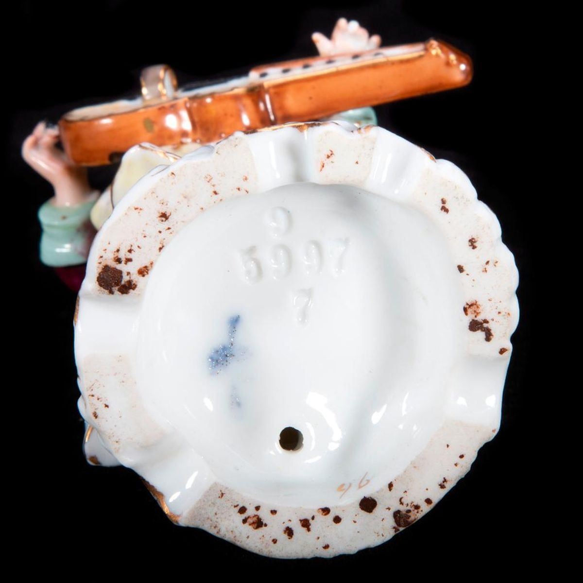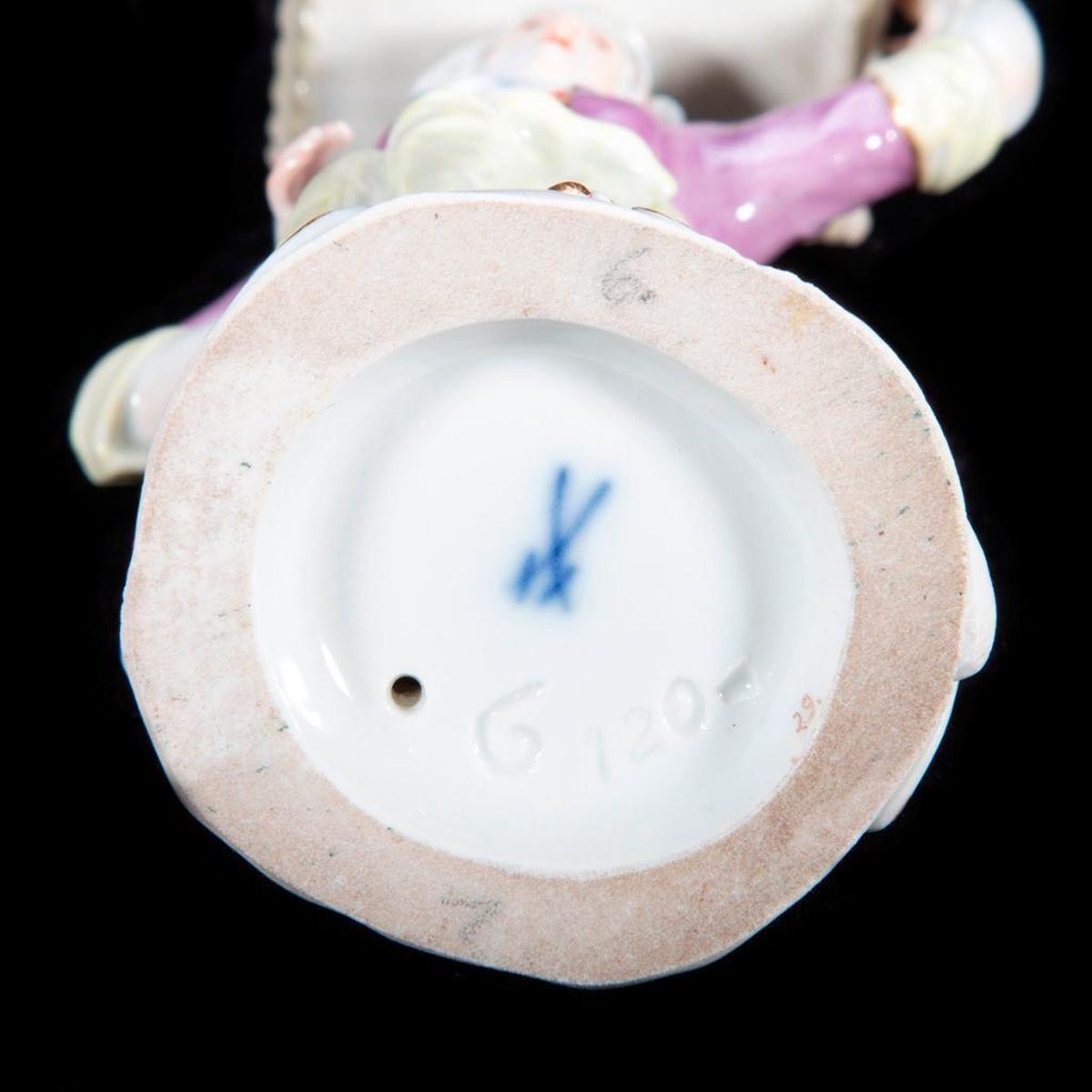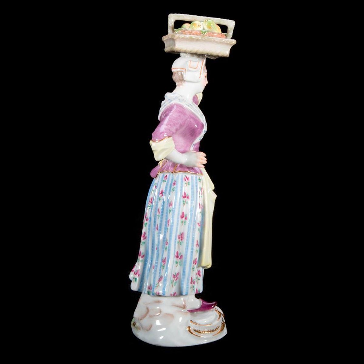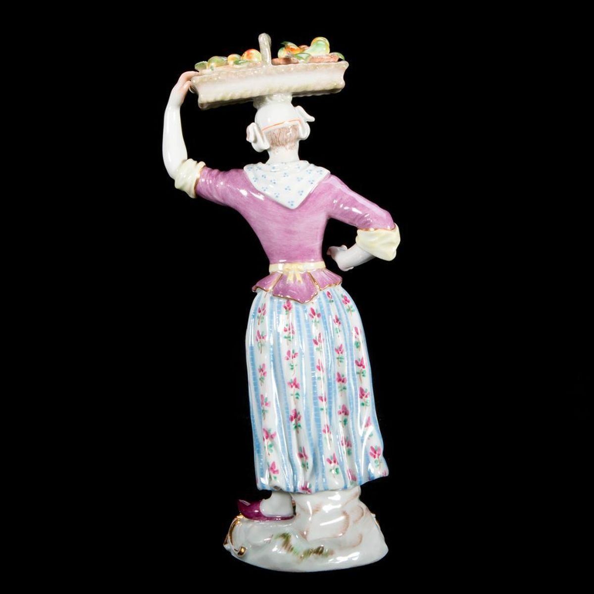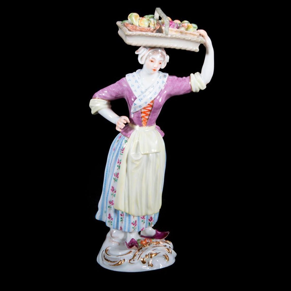 Three Meissen Figures, vegetable seller, dancing woman, musician. Tallest-5.75" Condition: dancing woman missing small finger on right hand. All others are very good.