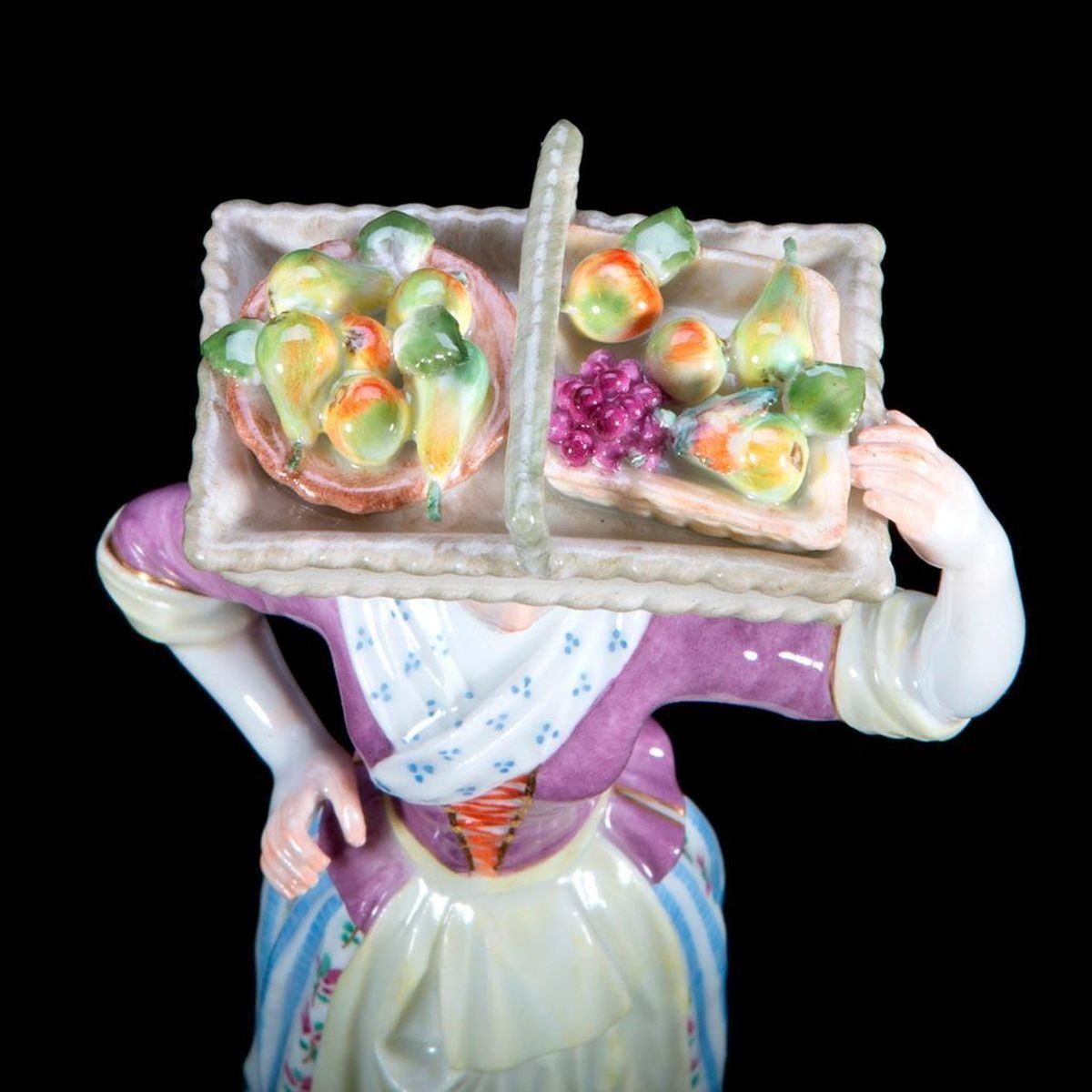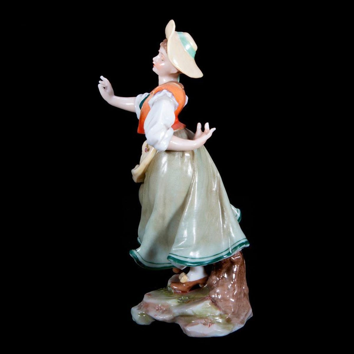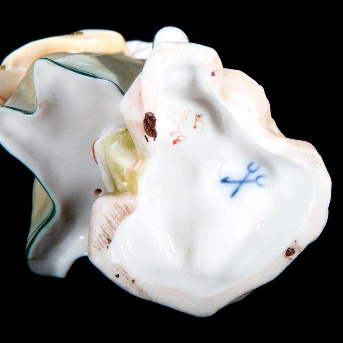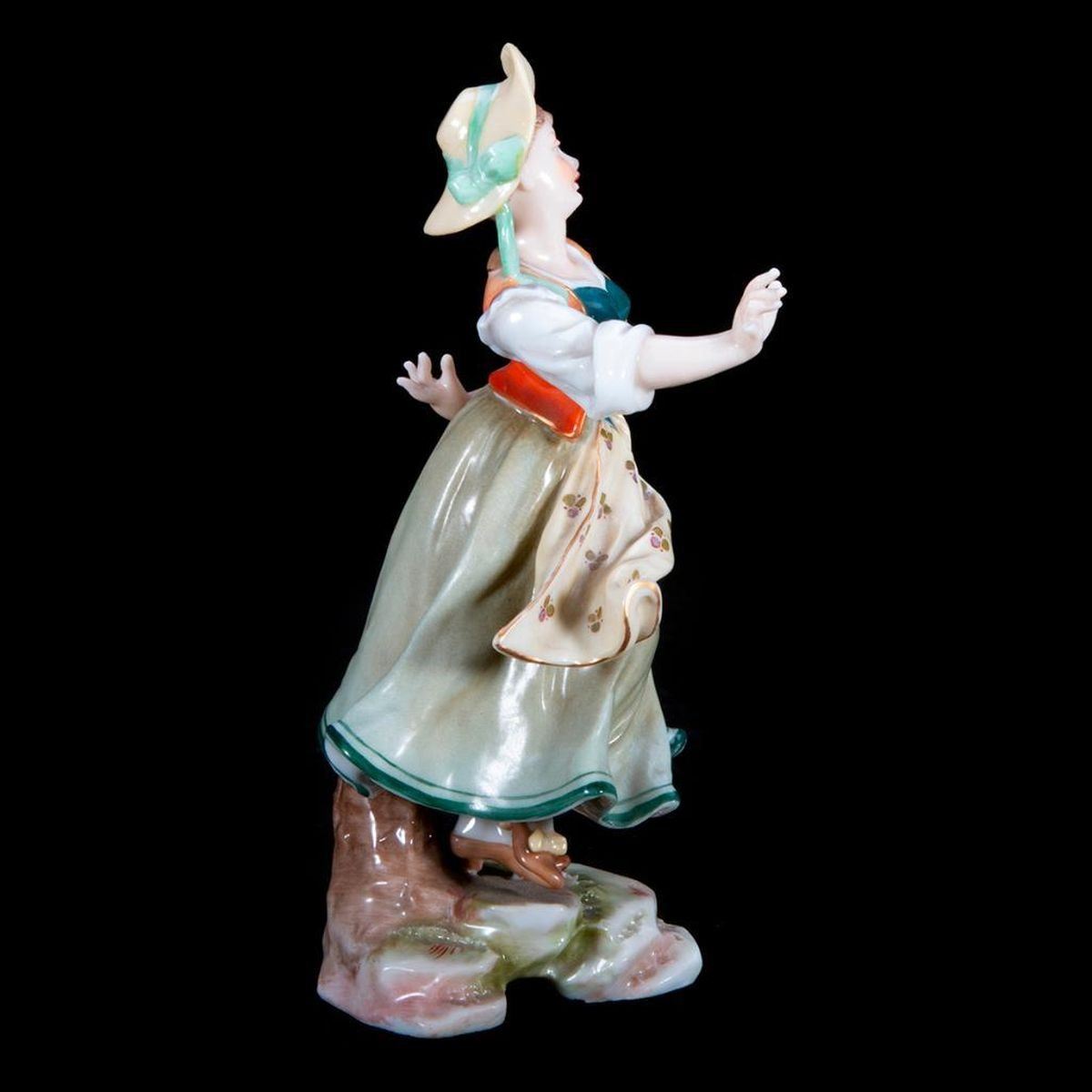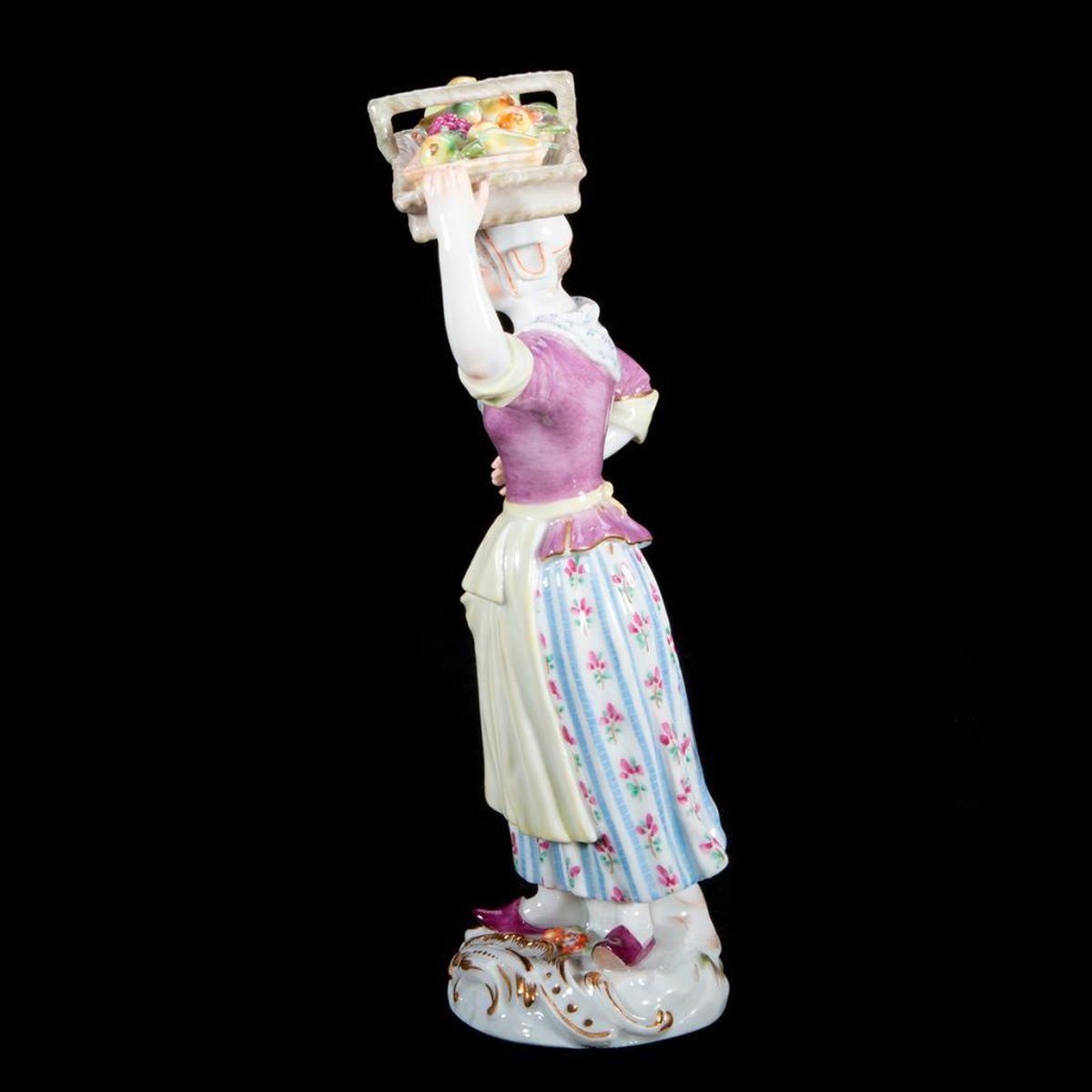 Three Meissen Figures, vegetable seller, dancing woman, musician. Tallest-5.75" Condition: dancing woman missing small finger on right hand. All others are very good.