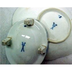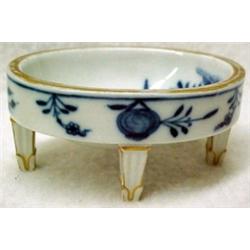 Three Meissen blue and white table pieces including footed master salt; and two 5 1/4" bowls, all with crossed swords mark on bottom Estimate 60/90