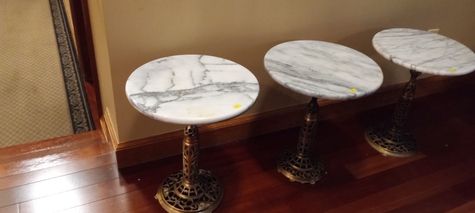 Three Metal Stands With Marble Tops 14W x 14D x 18T