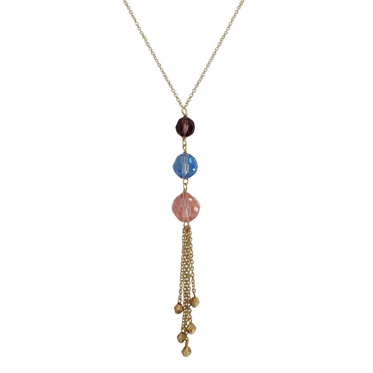 Three Multi Color Graduating Preciosa Beads Tassel Necklace, Gold Plated Brass Chain, 16