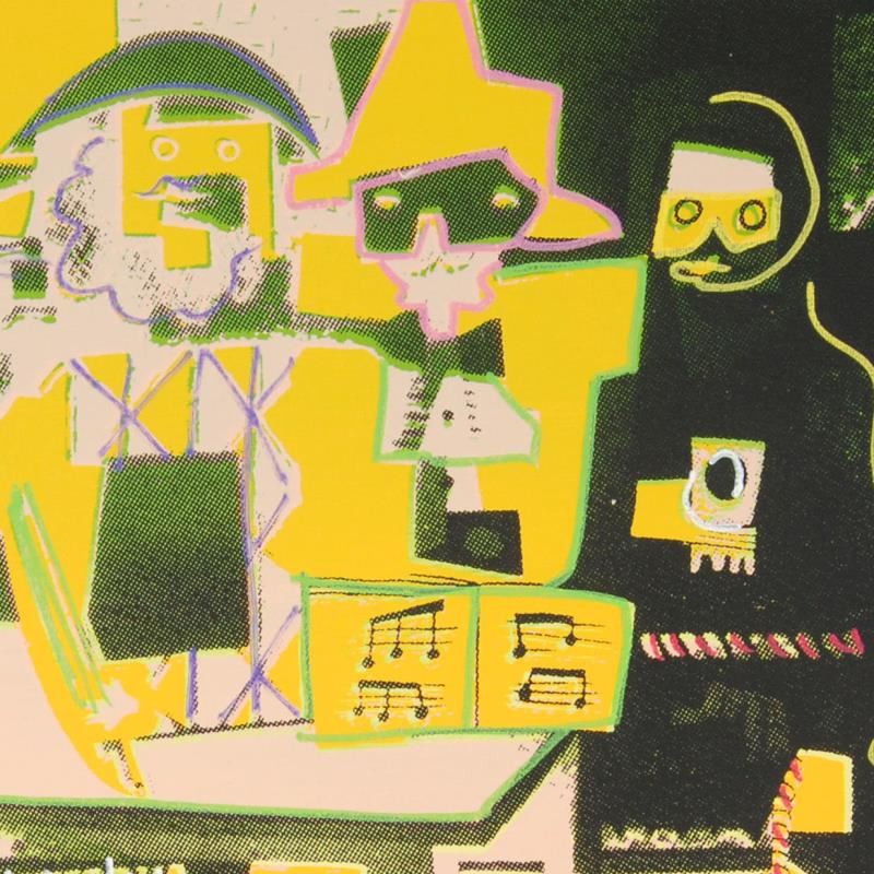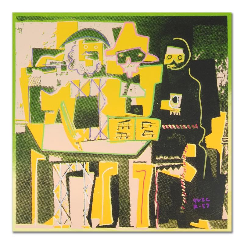 "Three Musicians (Picasso Homage)" is a one-of-a-kind hand-pulled silkscreen and mixed media painting on canvas by Ringo. This piece is hand signed by the artist and comes from the Andy Warhol Legacy Series. Includes Certificate of Authenticity. Due to the nature of the canvas, these pieces will need to be mounted for framing. Measures approx. 16" x 16" (image).