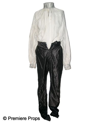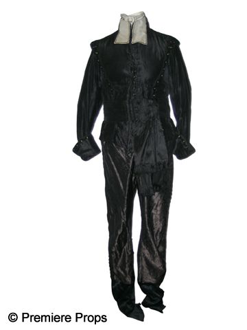 From Paul W.S. Anderson's The Three Musketeers (2011), this is an Aramis (Luke Evans) screen worn, hero wardrobe. Costume is comprised of a shiny black jacket with white collar, a white linen shirt, a black belt, and a pair of shiny black pants. A very well made costume. Oversized item. Additional Postage Required.
