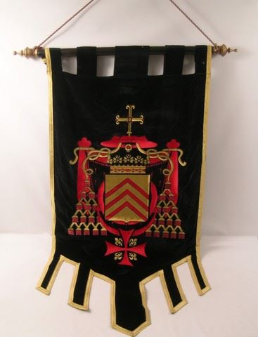 Screen used, black felt with gold and red design banner flag. (approx. 57" x 29 1/2")