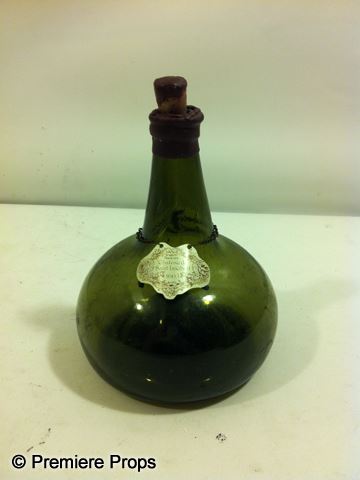 Planchet (James Corden) screen used, dark clear glass with 'Chateau de Daint Leaubert' on the front wine bottle. (approx. 8" tall)