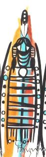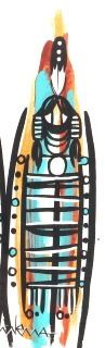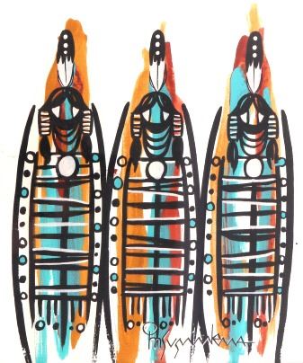 "Three Native Spirit Figures," Framed Watercolor
