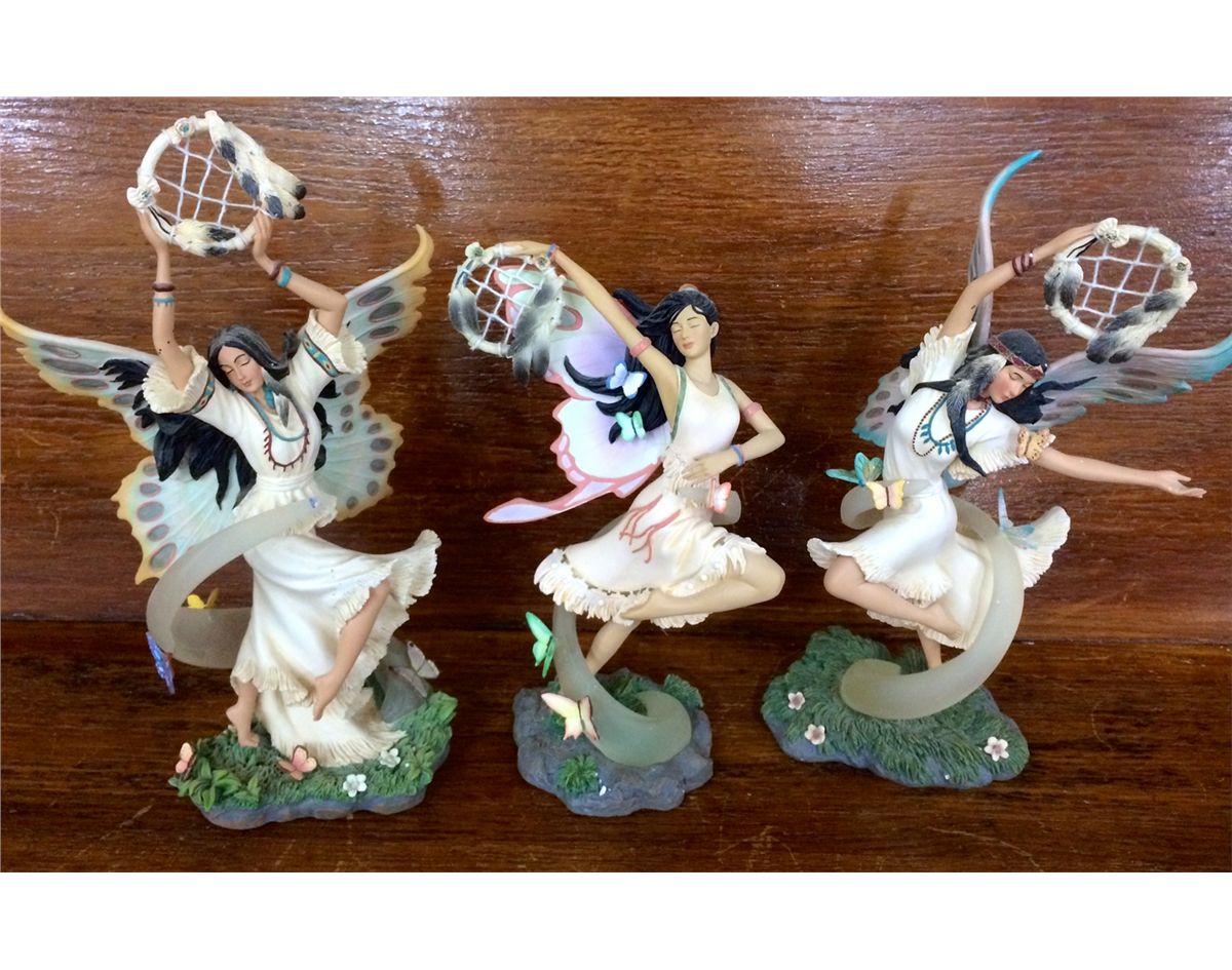 You get three different statues for one price in this lot. They all come with their original box and state they are from the “Dance of the Butterflies” collection. They are between 10” and 11” tall.