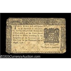 <TABLE cellSpacing=0 cellPadding=0 width="100%" bgColor=#000000 border=0><TBODY> <TR><TD width="100%"><TABLE cellSpacing=1 cellPadding=3 width="100%" border=0><TBODY><TR><TD width="100%" bgColor=#79735c><FONT face=arial color=#ffffff size=3><B>Description</B> </FONT></TD></TR><TR><TD width="100%" bgColor=#ffffff><FONT face=arial size=2><B>Three New York August 13, 1776 Notes.</B></I> $2, $5 and $10. All three grade right around <B>Fine,</B></I> none with noteworthy problems. The candelabrum vignette on the back of the $5 is particularly bold. (400-up ) (3 notes) </FONT></TD></TR></TBODY></TABLE></TD></TR></TBODY></TABLE><BR><TABLE cellSpacing=0 cellPadding=0 width="100%" bgColor=#000000 border=0><TBODY><TR> 3 notes Important notice: Heritage usually auctions material at the rate of 200-250 lots per hour. On some occasions eBay Live bid software or the Internet may not be able to keep up with the pace of the auction. We recommend placing a realistic absentee bid now as insurance to avoid disappointment. Occasionally the auctioneer may eliminate or reject an eBay Live bid, and the auctioneer may also reopen a lot after the close of the eBay live bidding (usually because we missed an audience bid), and may reject your bid even if it shows you as the winning bidder. By bidding via eBay Live, you agree that Heritage may award the lot to another bidder at its sole discretion under the circumstances described above or any other reasonable circumstances. Also please note that all Heritage lots purchased through eBay Live carry a 20% Buyer's Premium. Please make sure you read the Terms and Conditions before you bid.</TR></TBODY></TABLE>