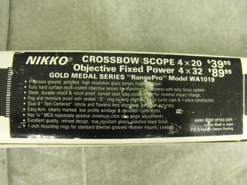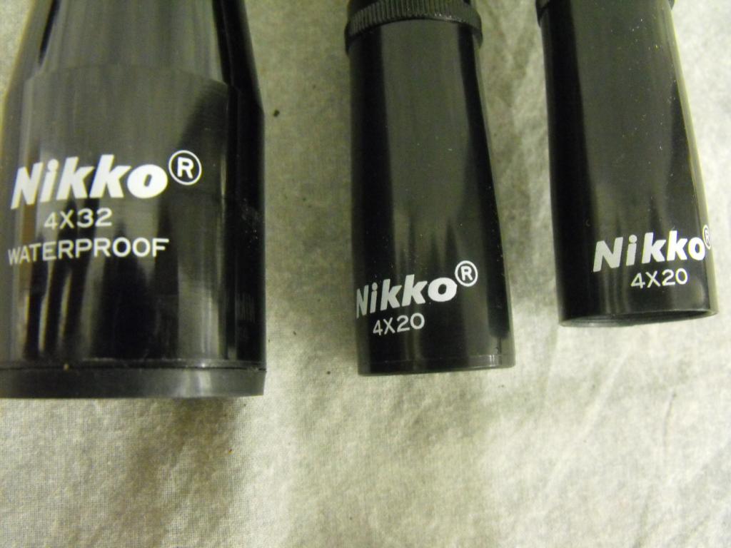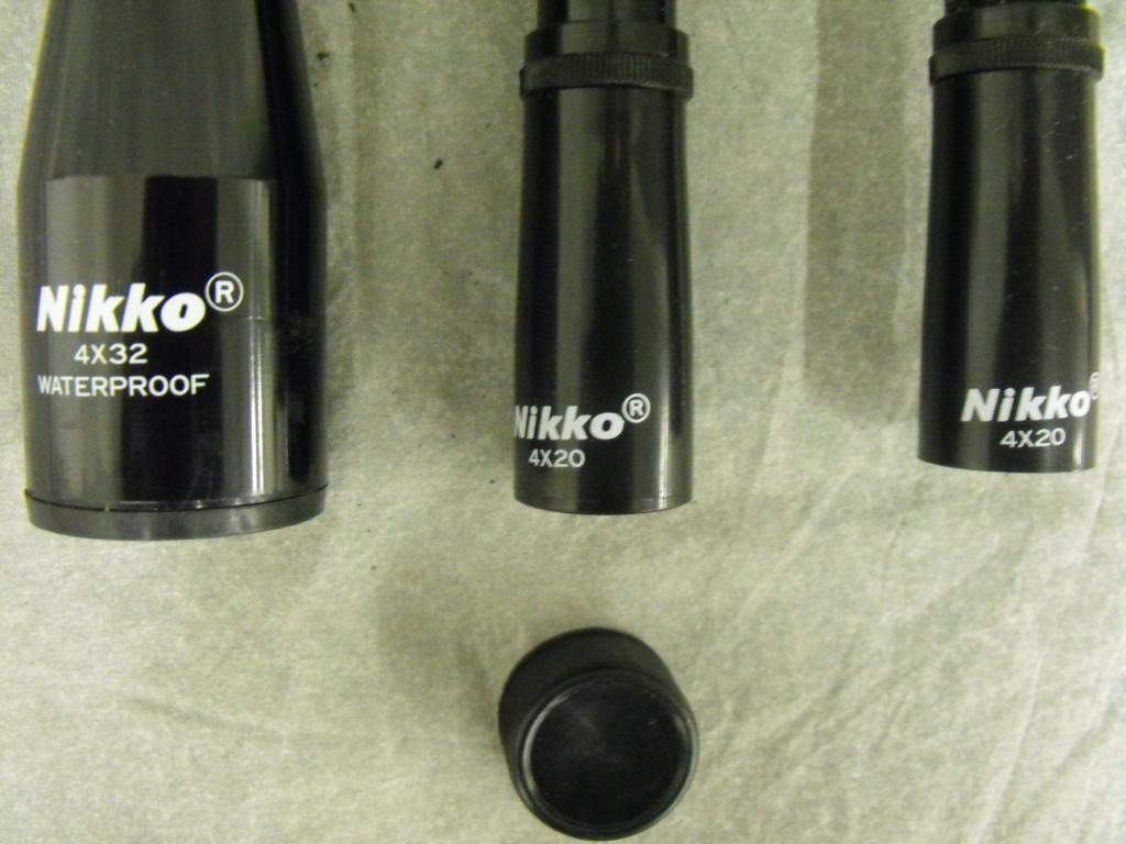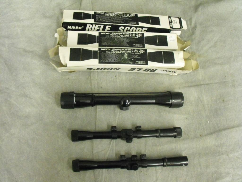Two Nikko 4x20, One 4x32 cross bow scopes in boxes, all in good condition.