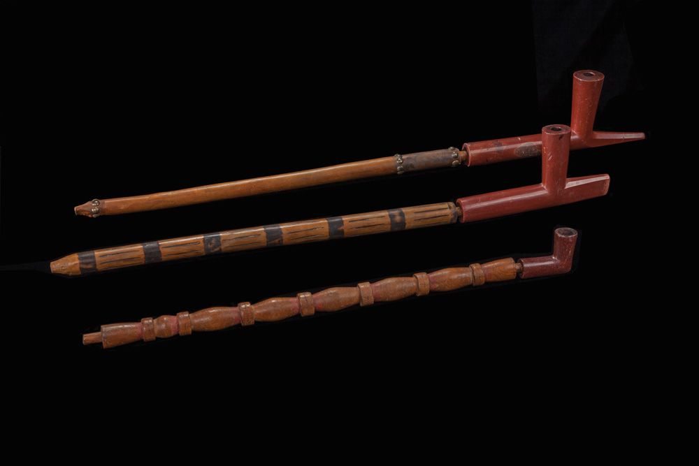3) 31" Total length, 10 1/2" "T" bowl, and a painted and tacked stem.  Fine condition, circa 1900.