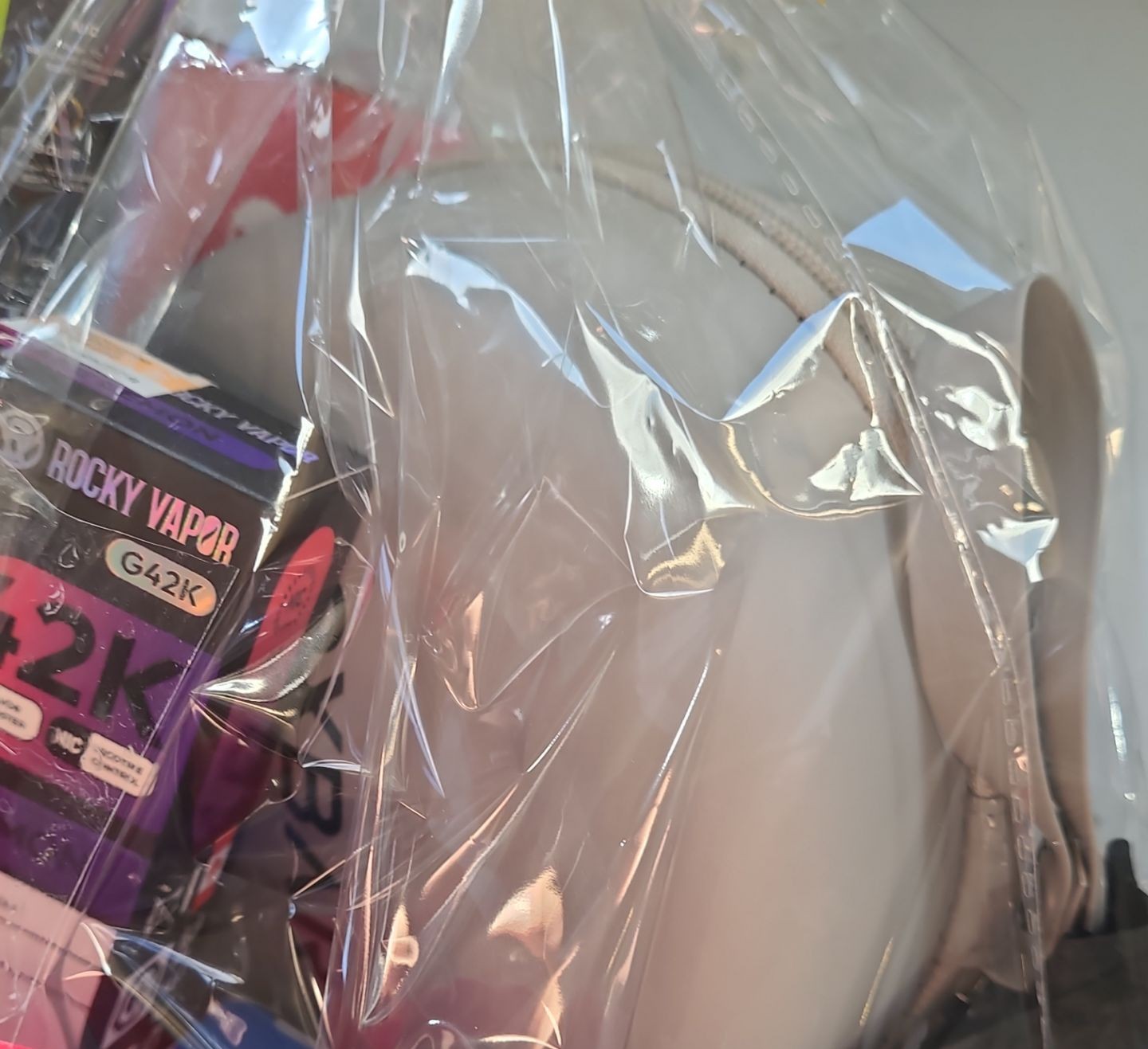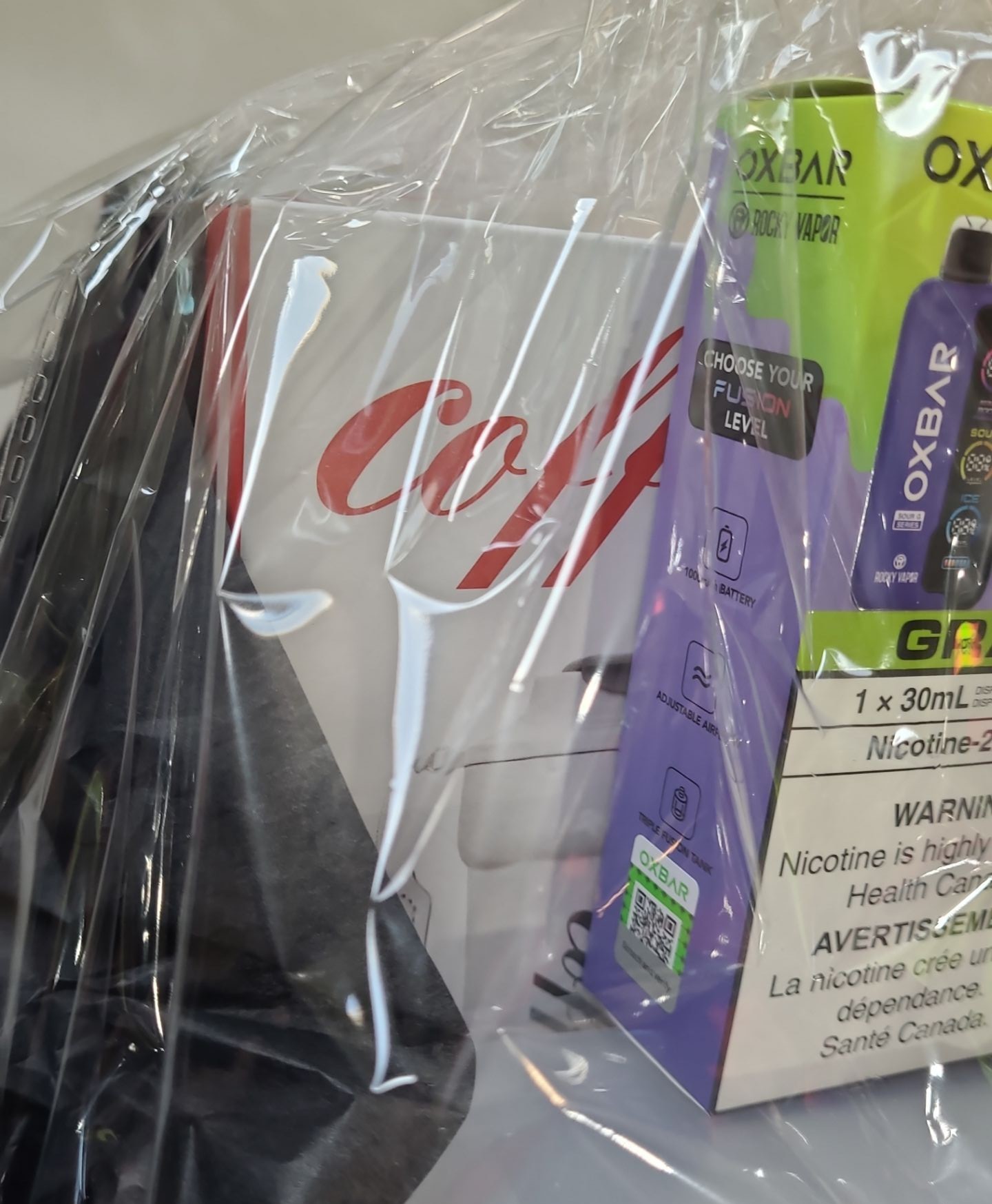 Oxbar: Rocky Vapor 42K Green Grape Lemon, Sour G Series Grape, Maglink 90 K Gummy Bear- Coffee Thermos/ Flask 480 ml, Memory Cloud Travel U-Shaped Neck Pillow, Collapsible Water Bottle, Bluetooth USB Clip-On Waterproof Speaker- Speaker is Black/ Red Color