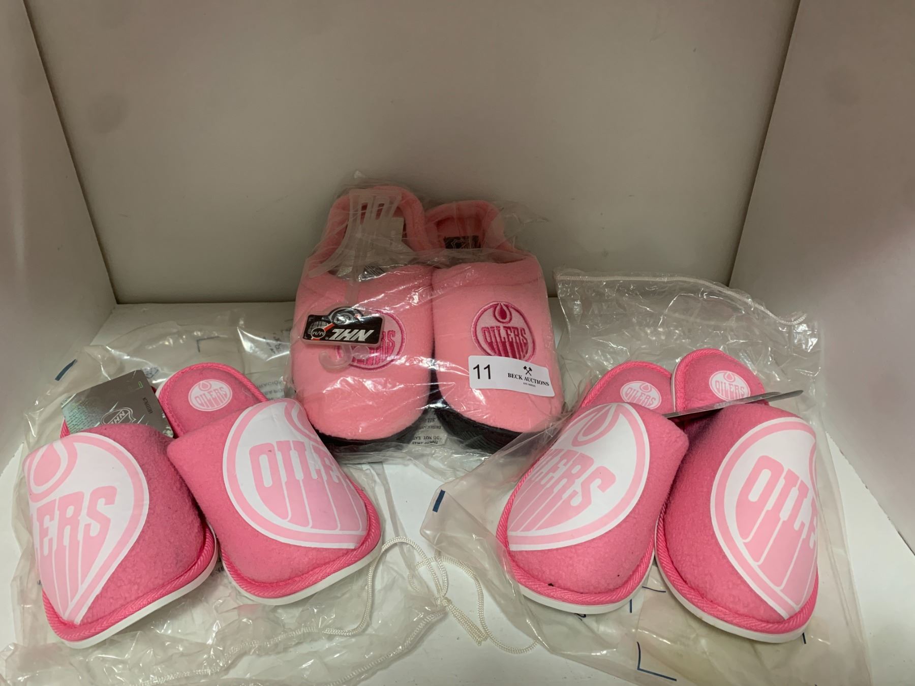 Three Pairs of Women's Oilers Slippers Two Small and One Large