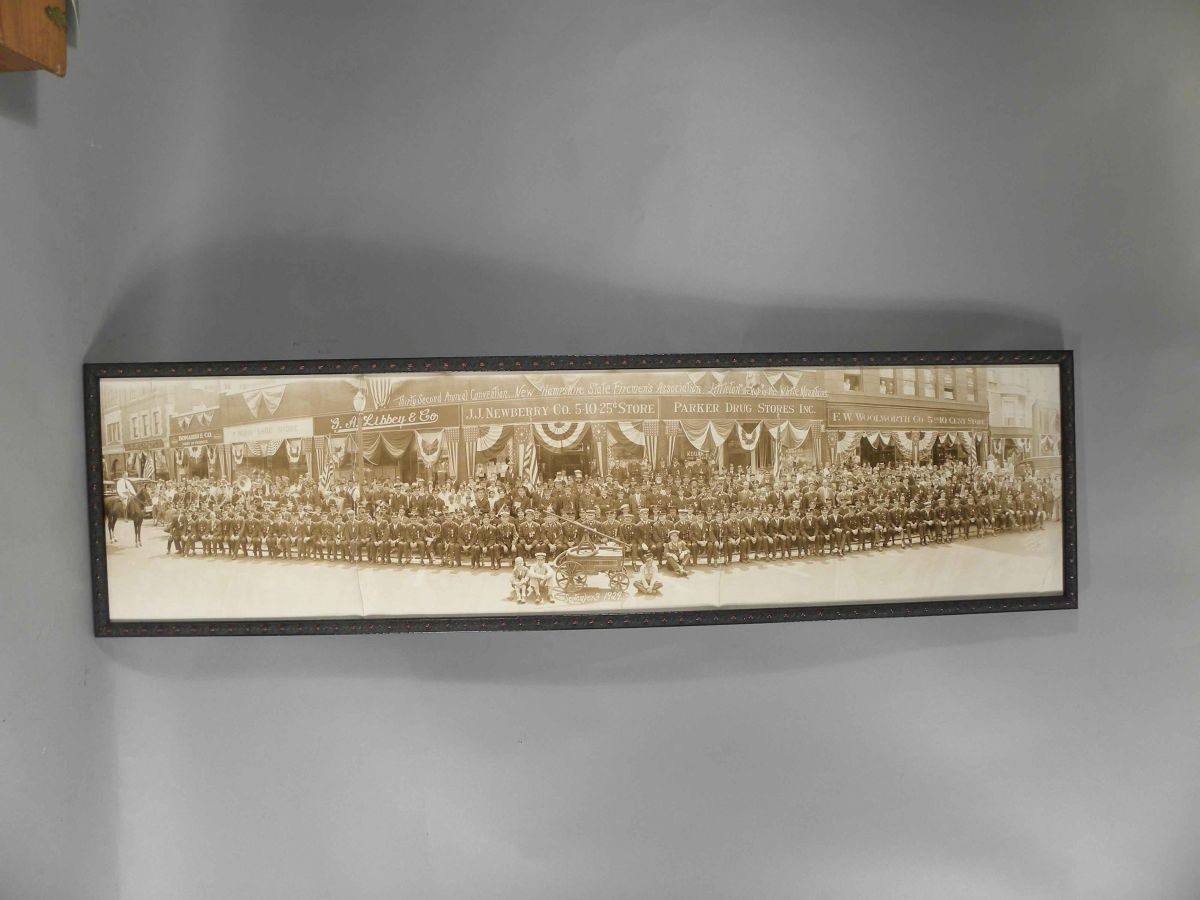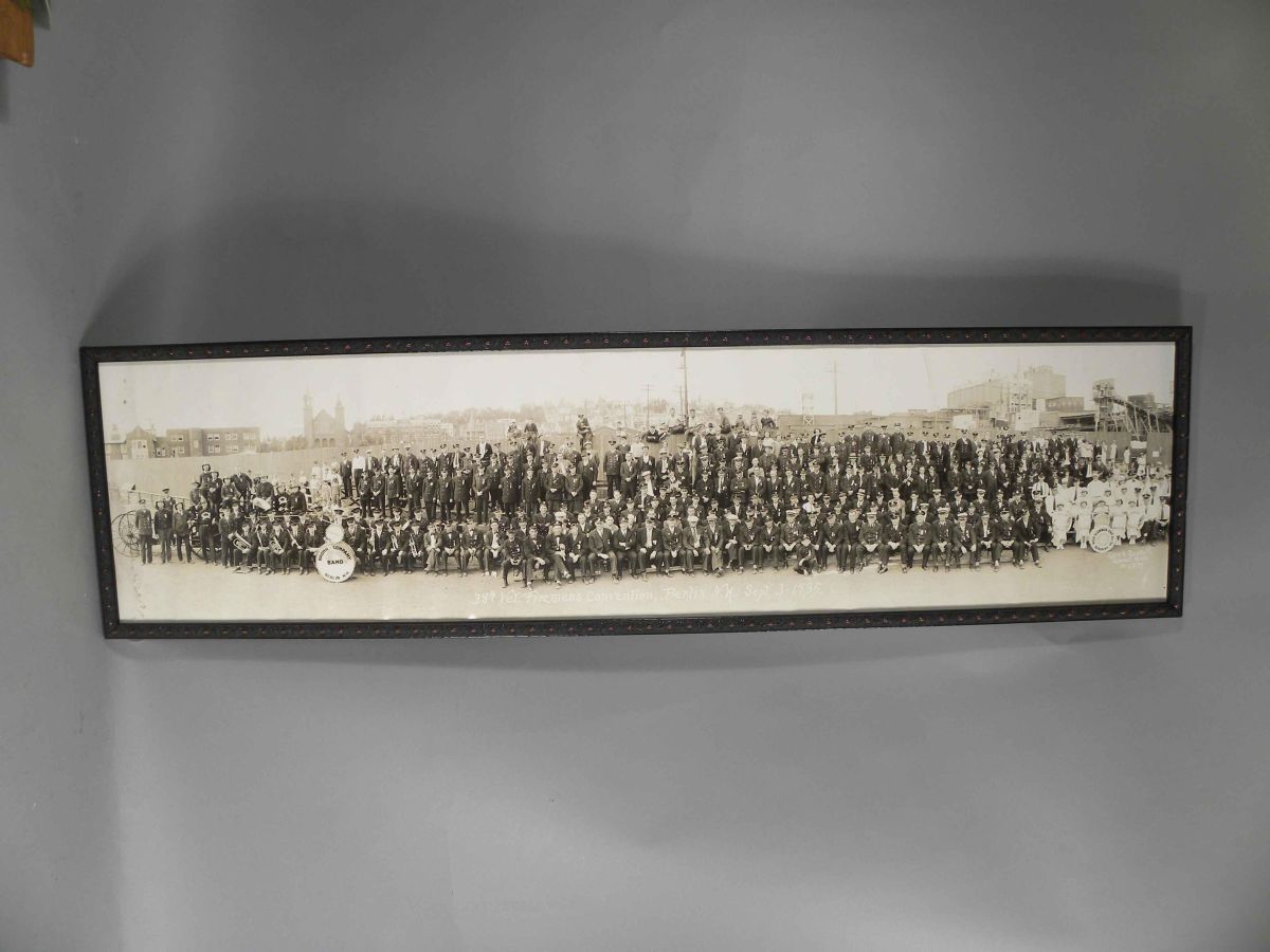 Three Panoramic Framed Photos of Firemen Conventions. Various Sizes and Conditions.