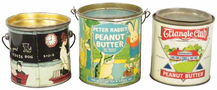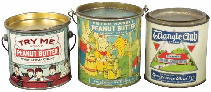 Three Peanut Butter Tins. Try Me, Peter Rabbit and Triangle Club Brands. 1# sizes. Overall very good condition.