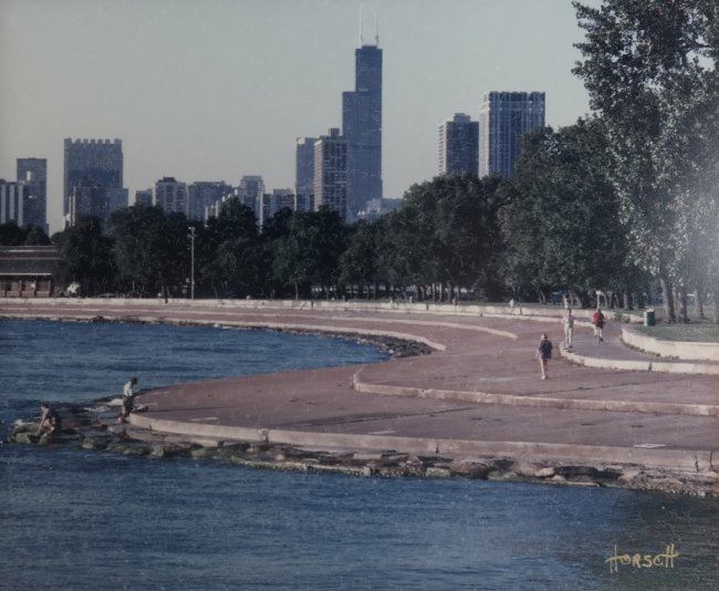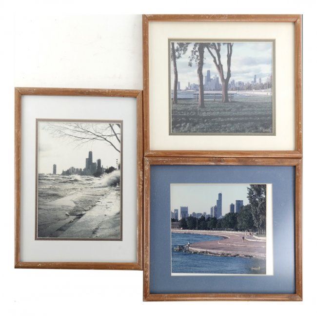 Three photographs of downtown NYC, including images of the Twin Towers by Horsitt. [Photo: 9" x 7"; Frame: 14 3/4" x 11 1/2"]. One loose from the mat.