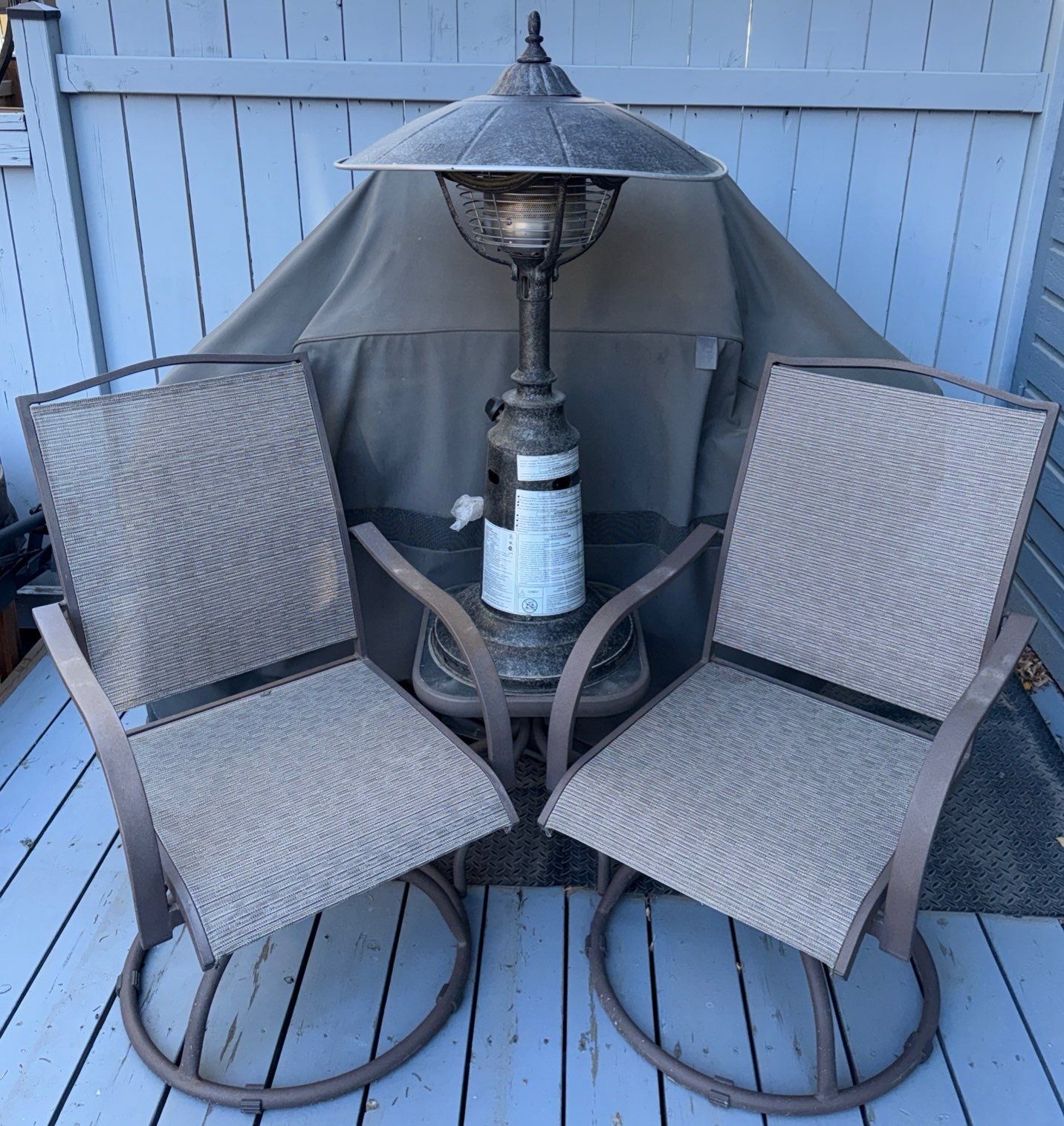 Three Piece Patio Bistro Set-Include Two Swivel Rockers & Propane Heater
